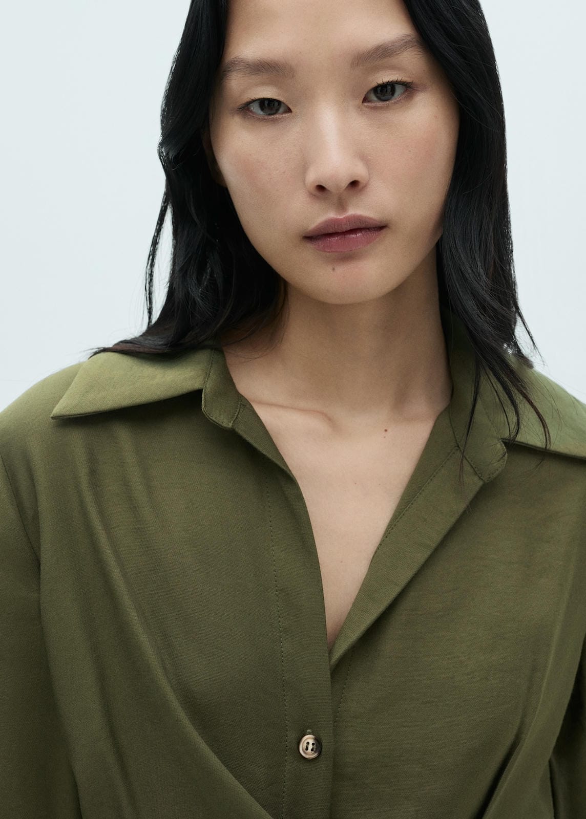 Flowy fabric. Wrap detail. Straight design. Long design. Shirt-style collar. Long sleeve. Button fastening on the front section. Side bow fastening. Side opening at the hem. The model is 1.75 tall and is wearing a size 36. Side length 104.0 cm. Back length 126.0 cmProduct Code: 77079070-43