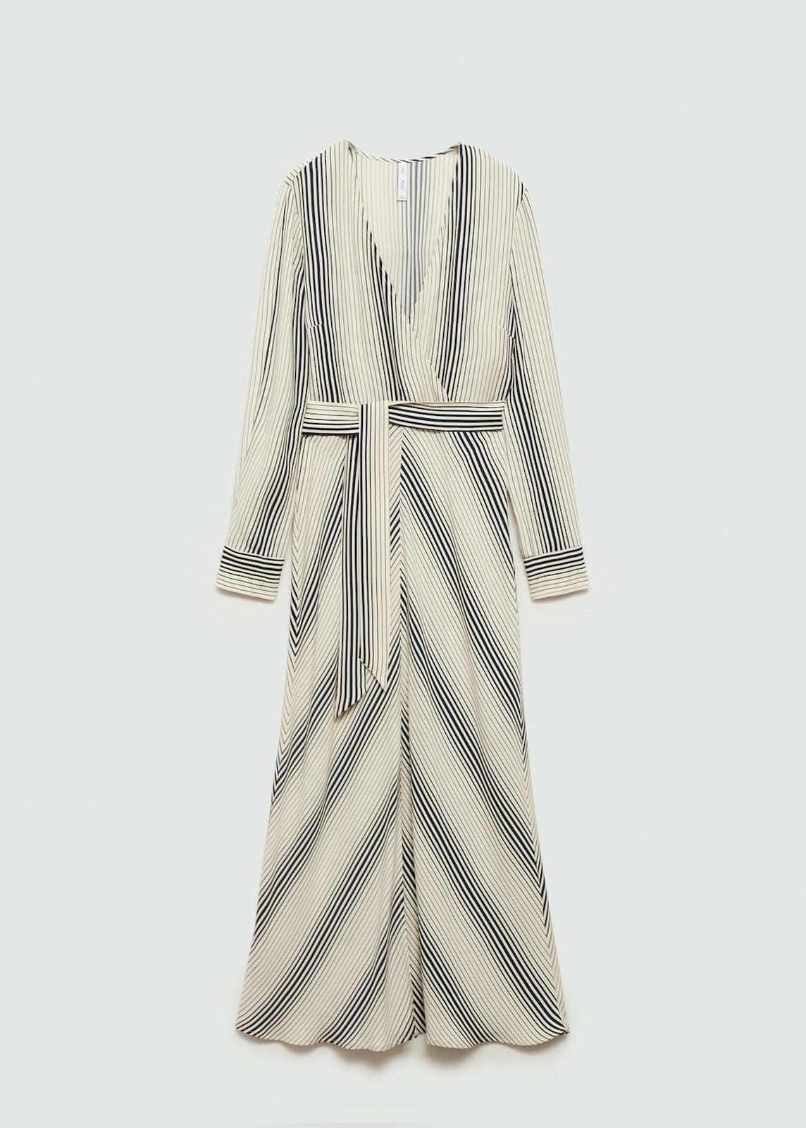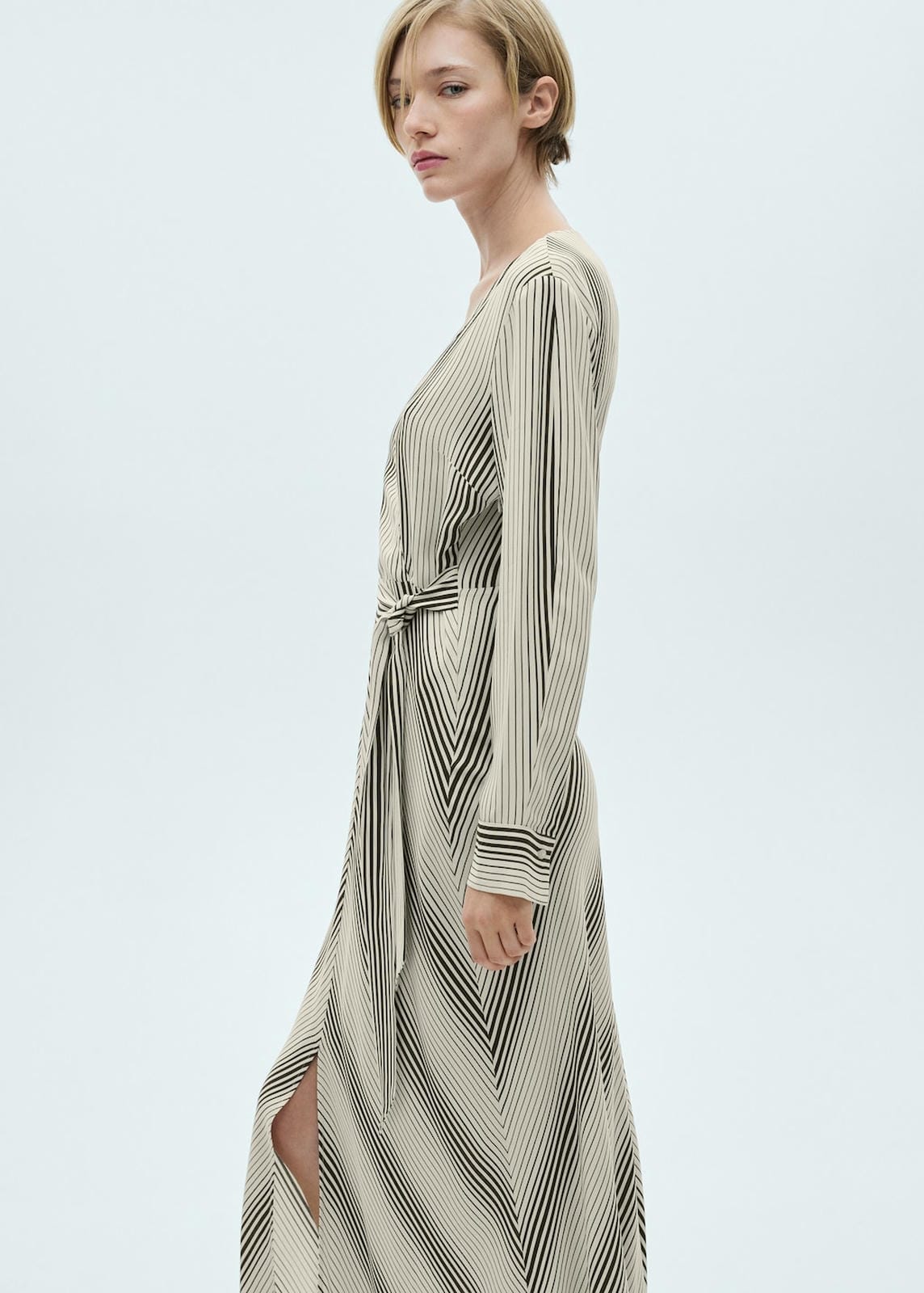 Flowy fabric. Long design. Wrap detail. Striped print. V-neck. Long sleeve with buttoned cuffs. Side bow fastening. The model is 1.81 tall and is wearing a size 36. Straight design. Side length 107.5 cm. Back length 130.0 cmProduct Code: 77035647-05