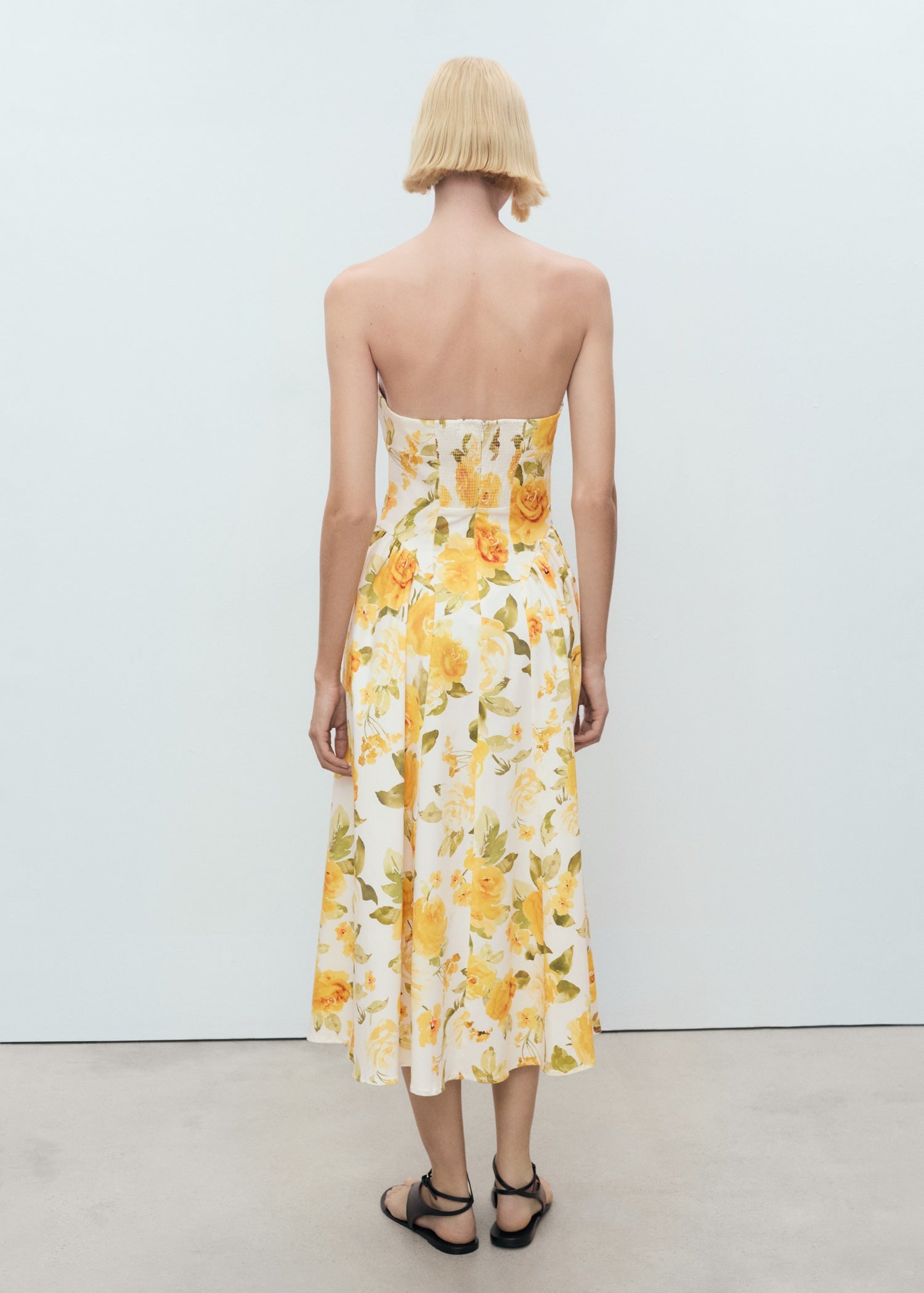 Midi design. Straight Design. Floral print. Low neckline. Sleeveless. Detachable thin straps. Elastic ruched panel at back. Zip fastening on the back section.Product Code: 87009083-12