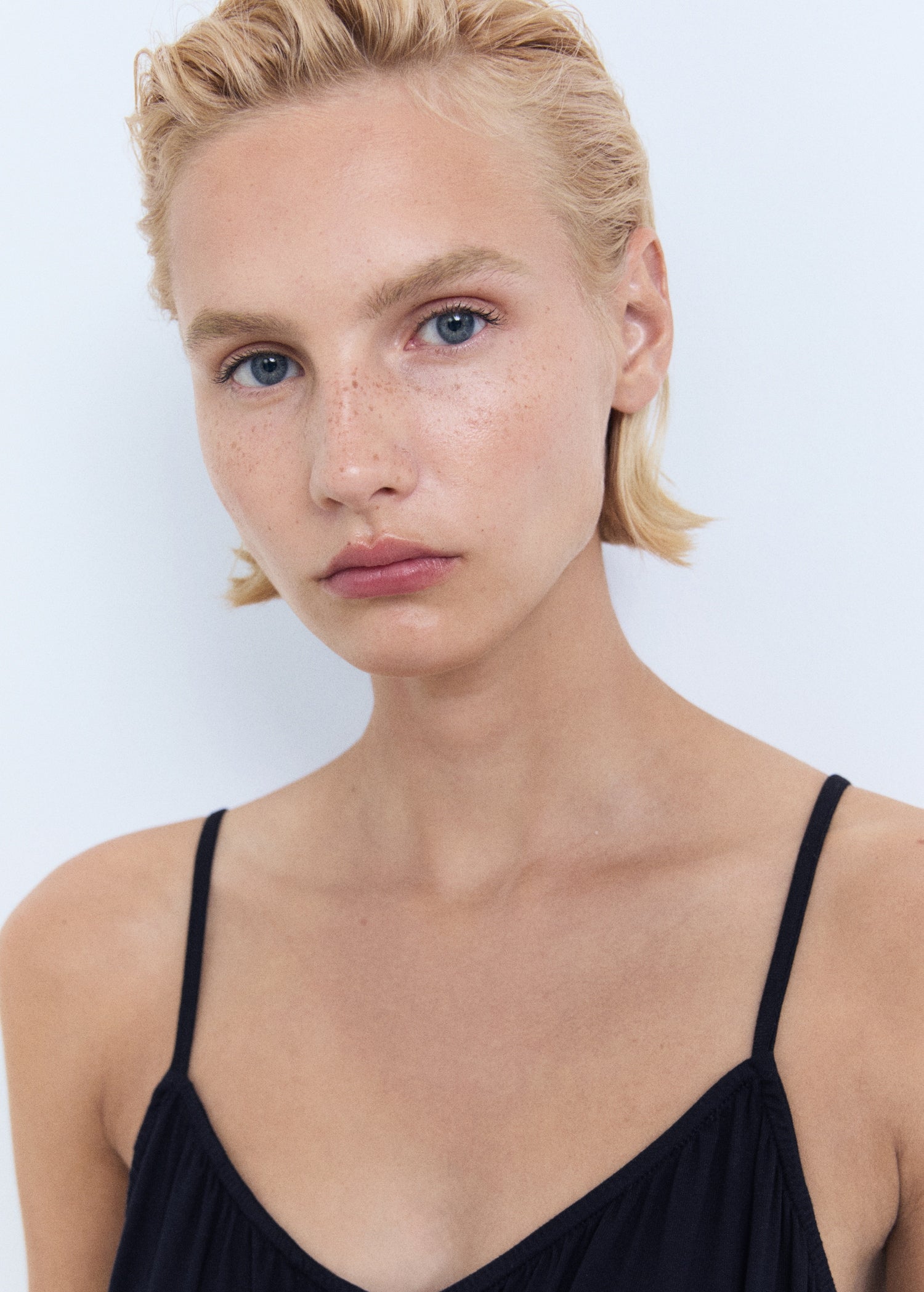 Short design. Straight Design. V-neckline. Sleeveless. Thin straps. Gathered details. No Fastening.Product Code: 87018656-56