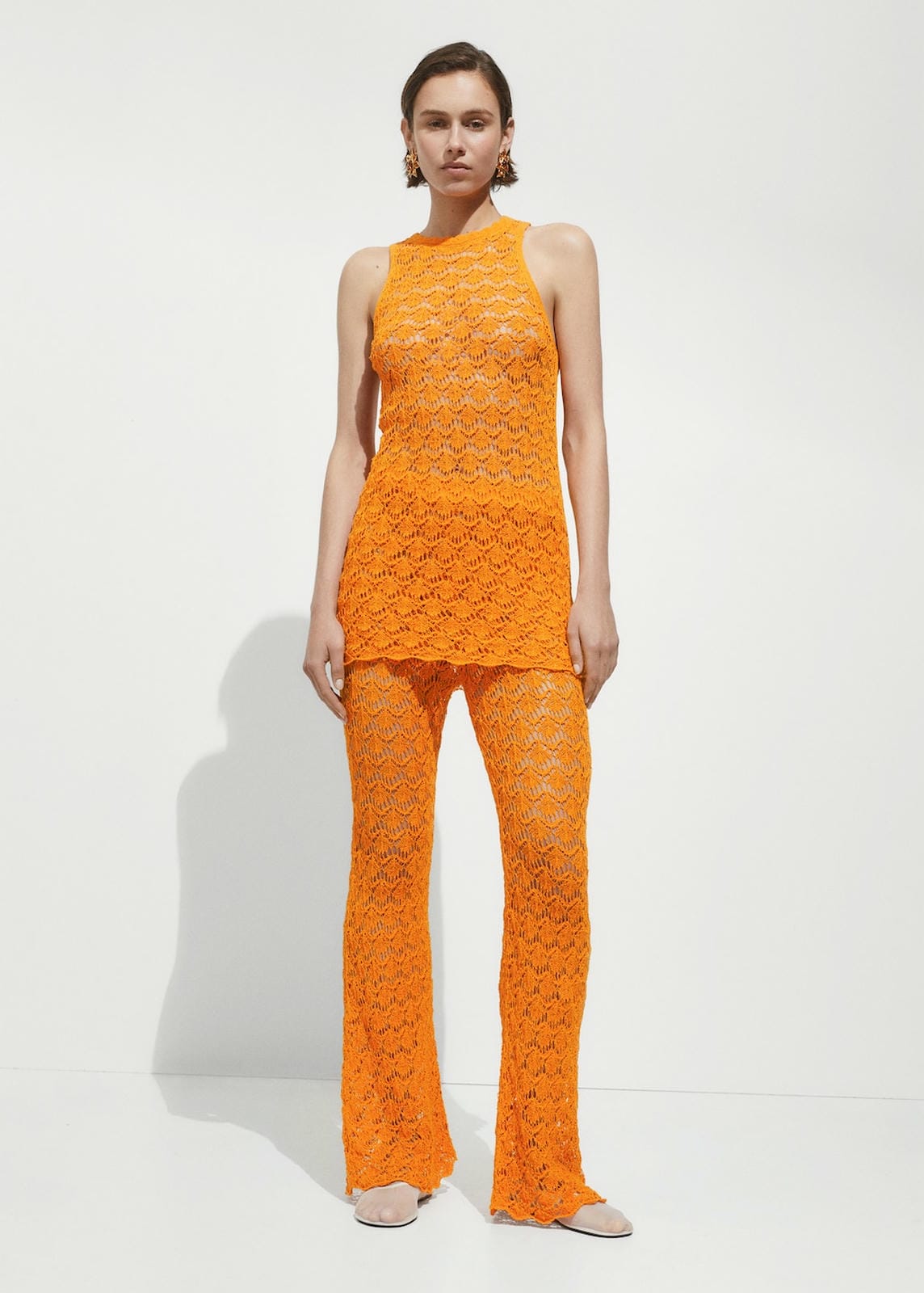 Cotton-blend fabric. Medium knit. Straight design. Short design. Round neck. Sleeveless. Wide straps. Unclosed. Crochet fabric. Back length 76.0 cmProduct Code: 77060379-20