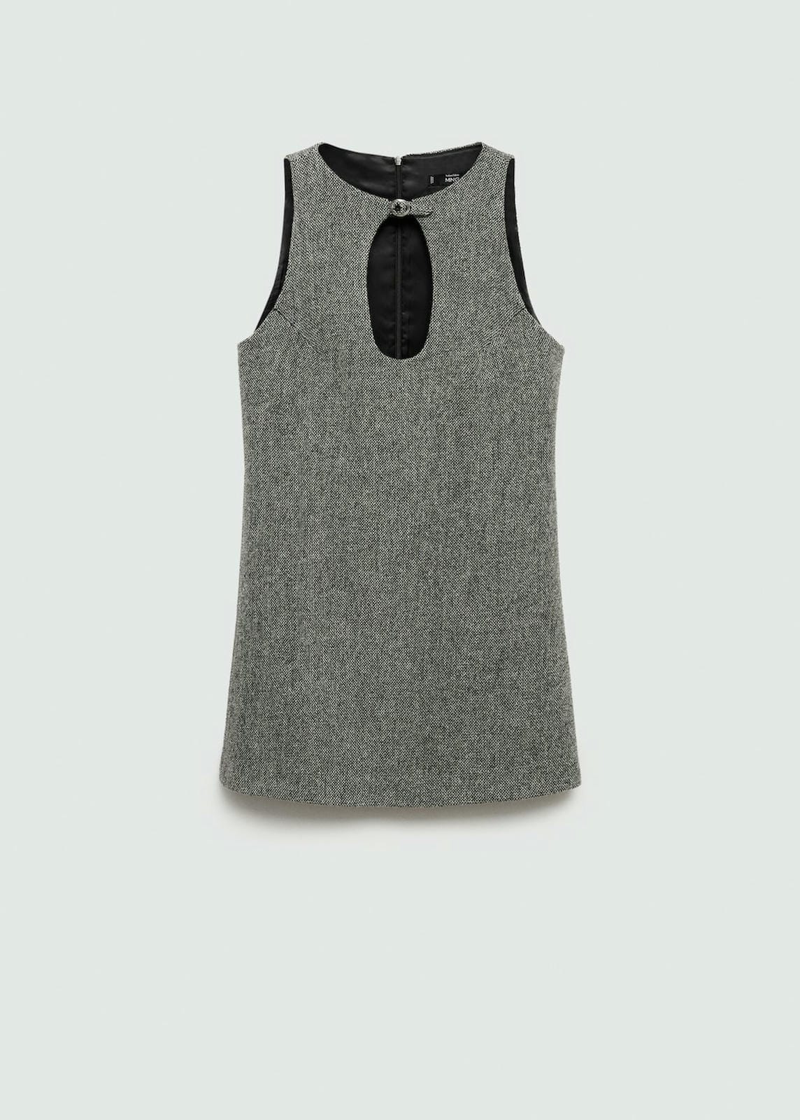 Wool mix fabric. Short design. Straight design. Round neck. Sleeveless. Invisible back zip fastening. Decorative buckle. Front slit. Inner lining. The model is 1.75 tall and is wearing a size 36. Side length 63.9 cm. Back length 87.8 cmProduct Code: 77048282-92