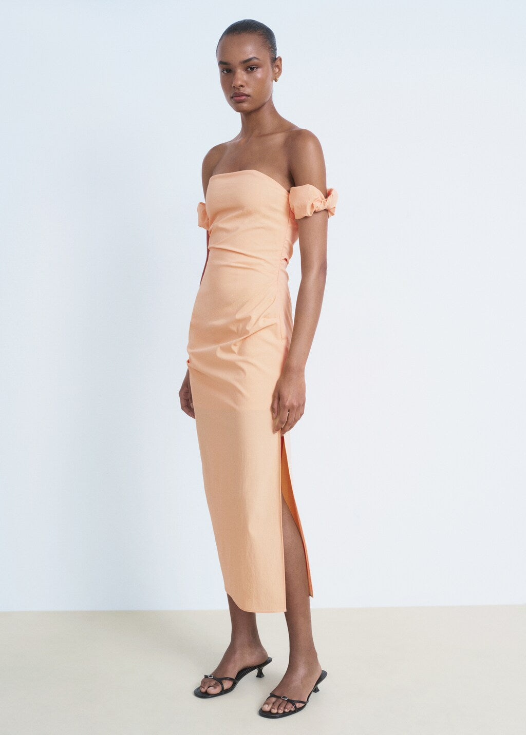 Cotton fabric. Midi design. Fitted design. Strapless. Puffed short sleeve. Side slit. Side zip closure.Product Code: 17022931-26