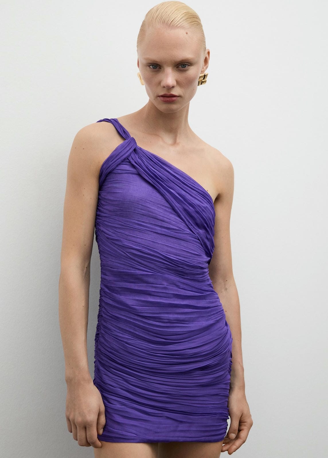 Short design. Shaved design. Asymmetric neckline. Wide strap. Invisible lateral zip fastening. Inner lining. Party and events collection. Fitted design. Side length 67.7 cm. Back length 66.8 cmProduct Code: 77064068-65