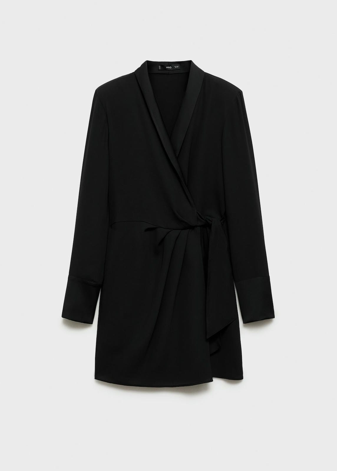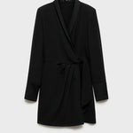 Light fabric. Front closure. Long sleeve. Lining only. Flowy fabric. Wrap detail. Straight design. Short design. Lapel-collar V-neck collar. Wrap collar. Bow on the waist. Inner lining. Plus Size Available. Side length 70.3 cm. Back length 93.7 cmProduct Code: 77029060-99