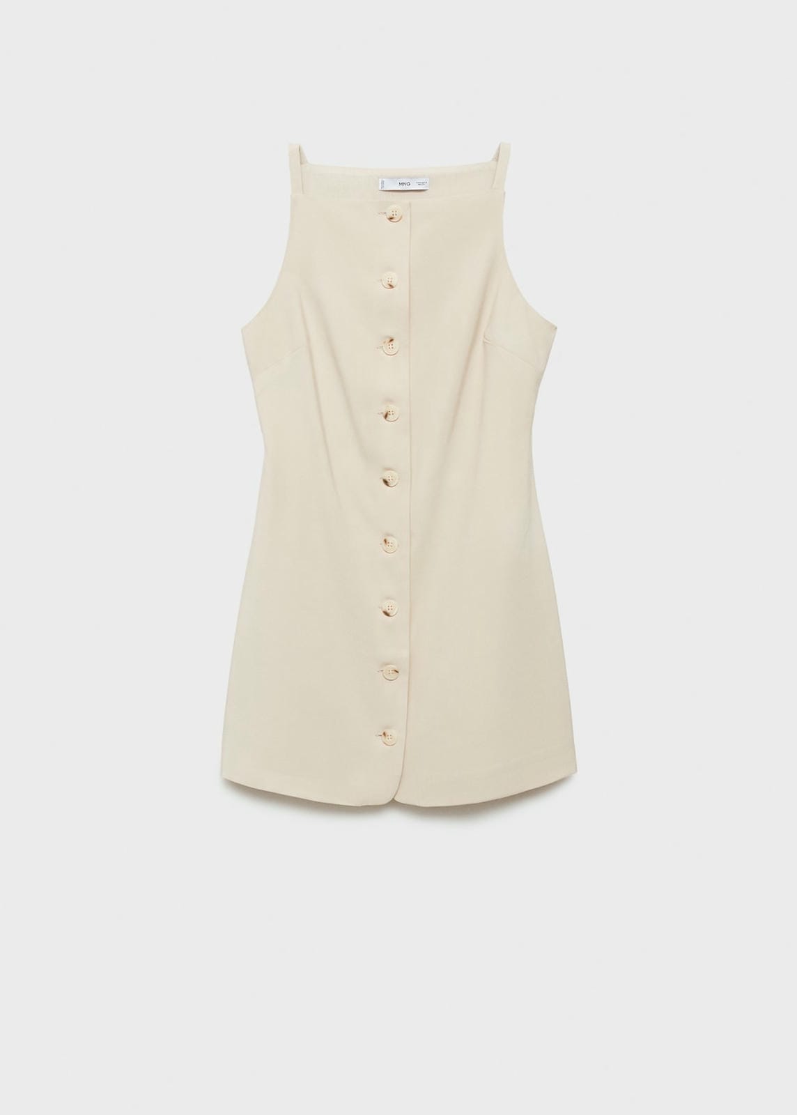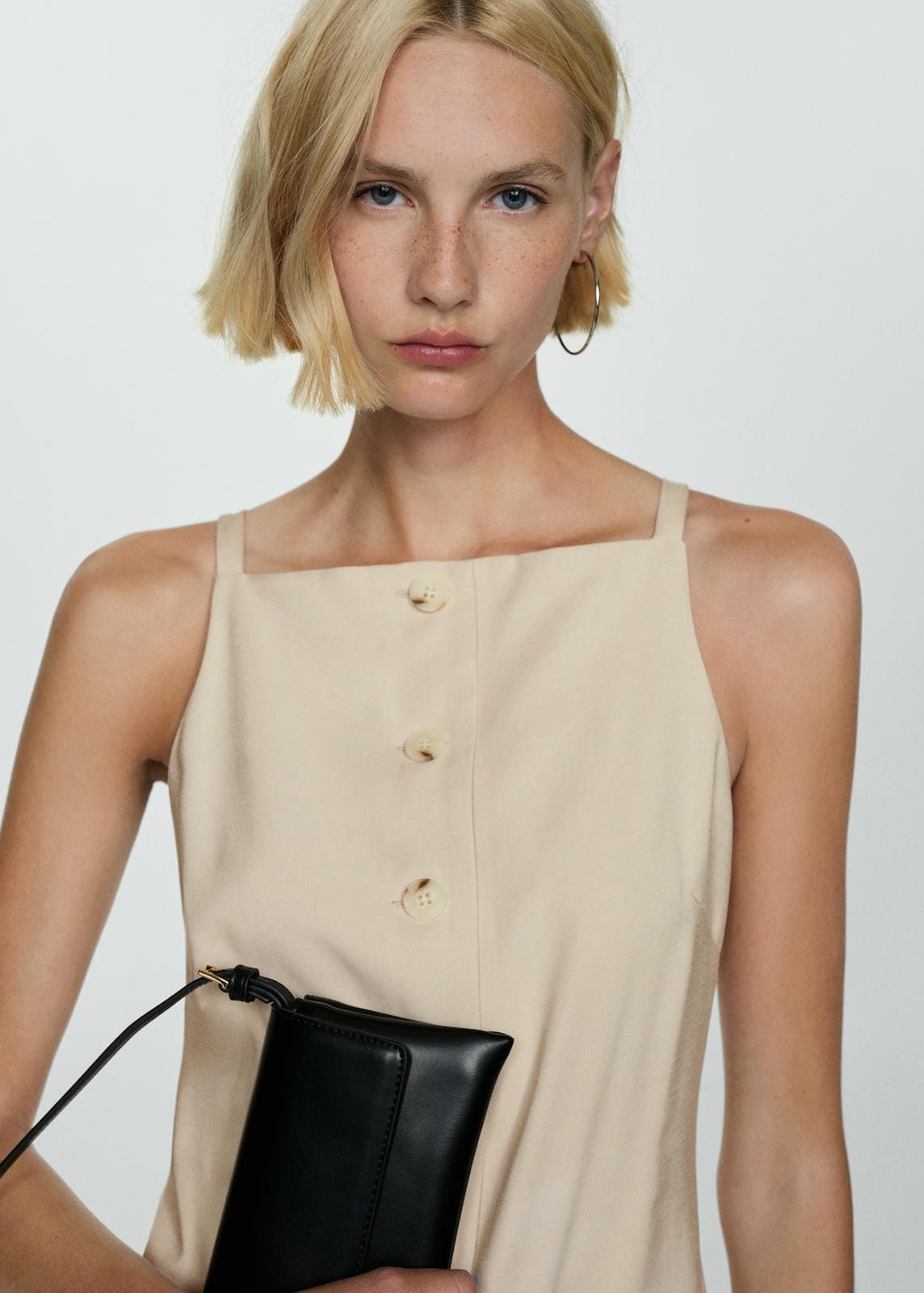 Flowy fabric. Straight design. Short design. Square neckline. Sleeveless. Thin straps. Inner lining. Front closure with buttons. Side length 67.3 cm. Back length 88.8 cmProduct Code: 77034029-05