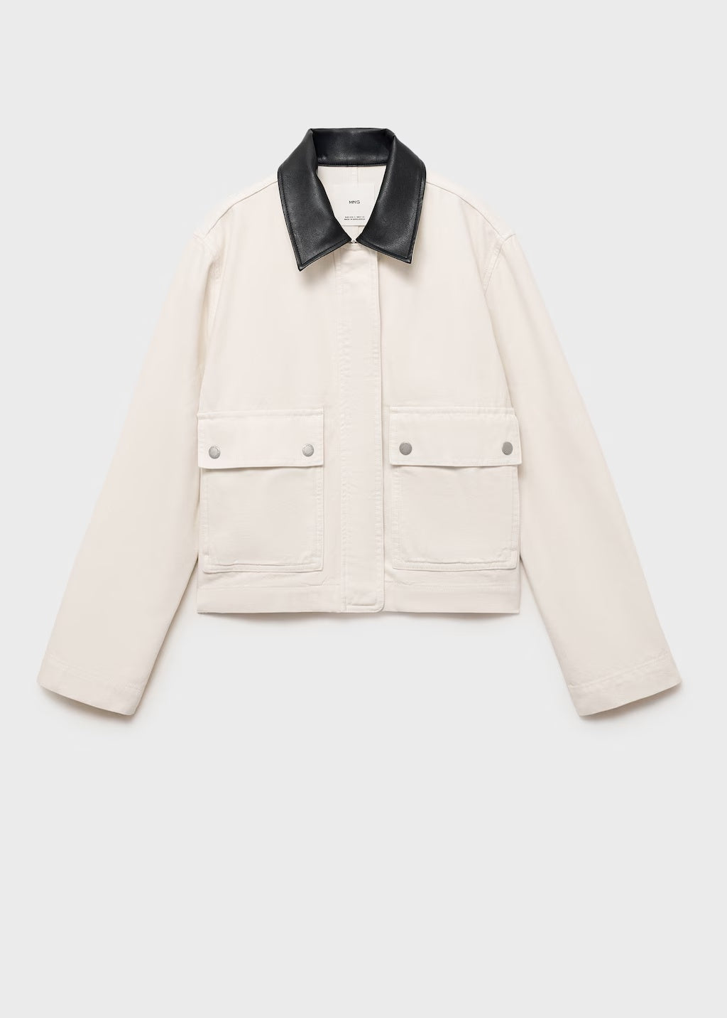 Denim-style cotton fabric. Combined design. Straight Design. Leather-effect shirt collar. Long sleeves. Two patch pockets, flap and button on the front. Concealed zip and button fastening.Product Code: 17054092-05