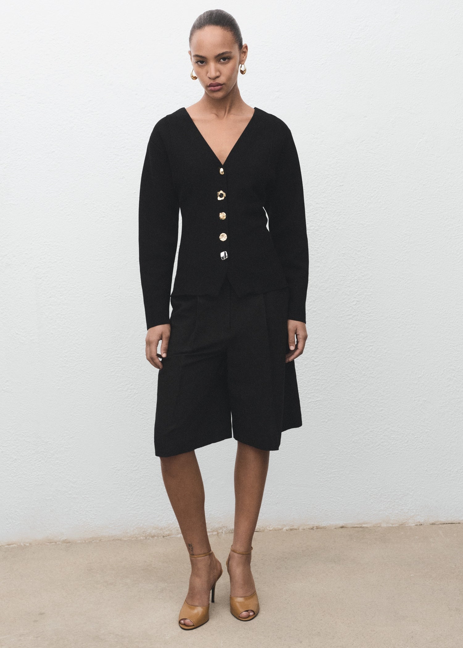 Fine-knit fabric. Fitted design. V-neck. Long sleeve. Jewel-effect buttons. Front closure with buttons.Product Code: 17064139-99