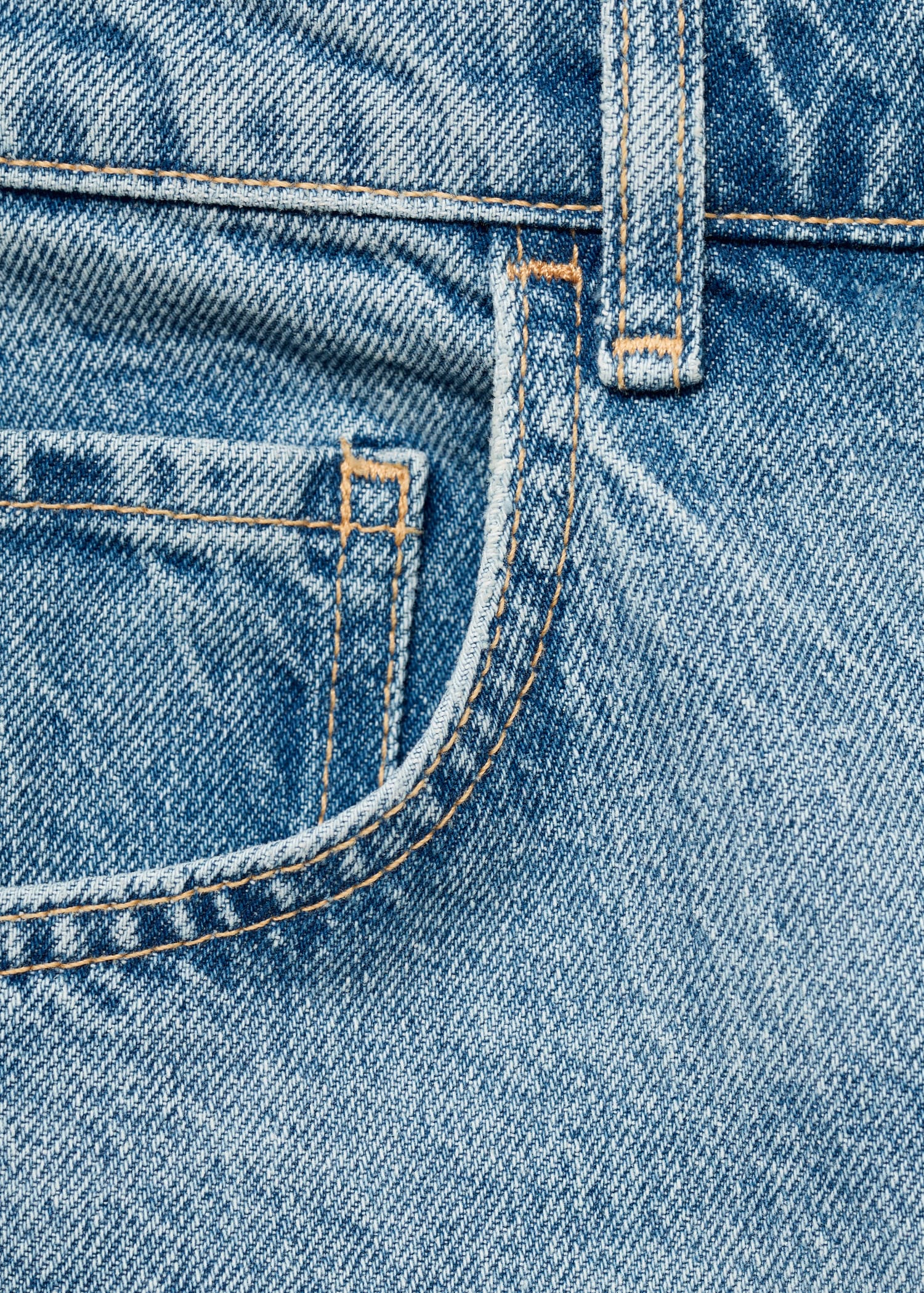 Denim-style cotton fabric. Long design. Balloon design. Barrel style. Mid-rise. Belt loops. Five pockets. Front zipper and button closure. Inside length 79 cm.Product Code: 17074445-TM