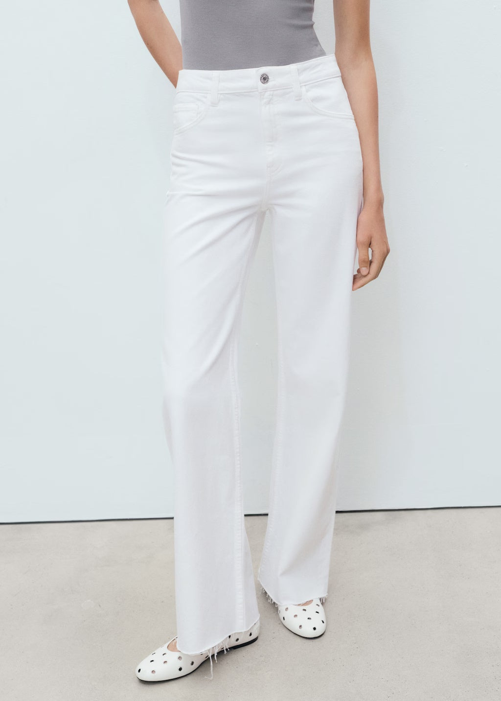 Long design. Wide-leg design. High waist. Belt loops. Five pockets. Frayed hem. Zip and button fastening. Inside length 84.5 cm. Denim-style cotton fabric. Wide leg. Front zipper and button closure.Product Code: 17001206-01