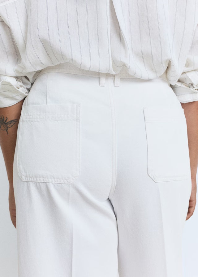 Denim-style cotton fabric. Long design. Wide-leg design. High waist. Belt loops. Two front pockets. Two pockets on the back. Button and zip fastening. Inner length 82.5 cm. Available Plus. Two patch pockets at the front. Front zipper and button closure. Inseam 85 cm. Wide leg.Product Code: 17021188-01