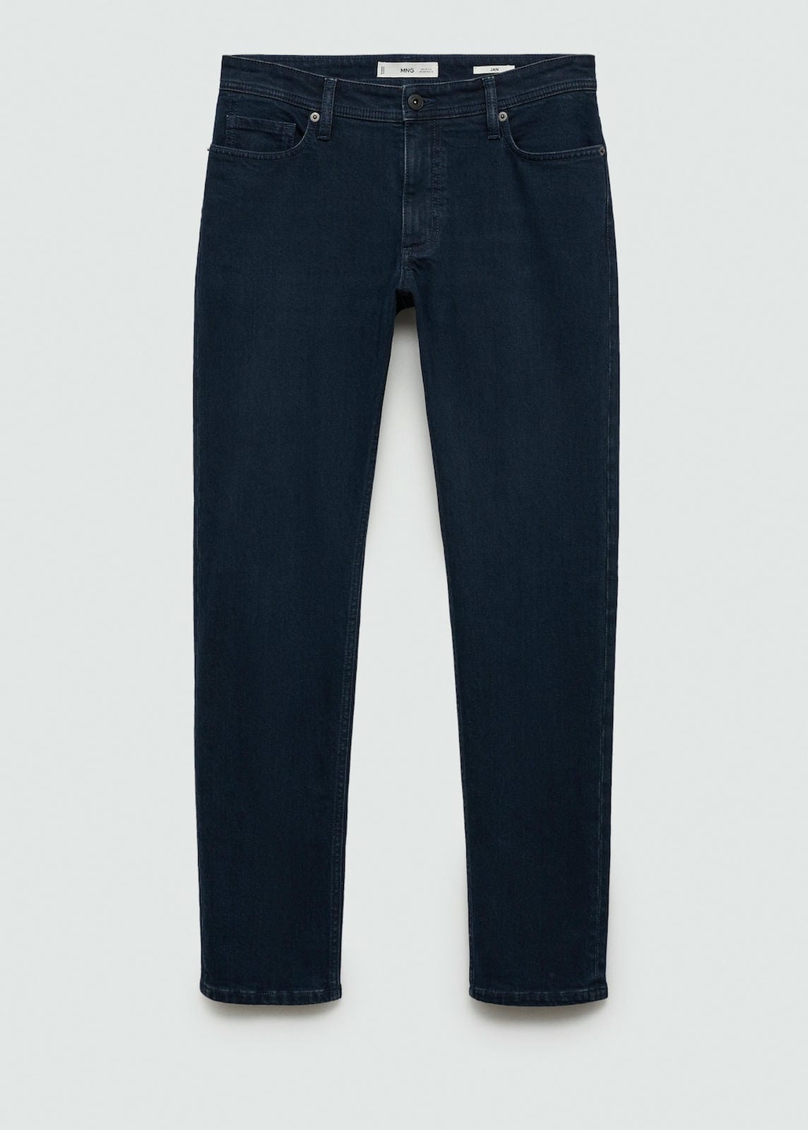 Slim fit. Cotton fabric. Dark blue. Medium waist. Belt loops. Zip and one button fastening. Two side pockets. Coin pocket. Two patch pockets on the back. The model is 185 cm tall and is wearing a size 42. Inside leg measurement 81.2 cm. Side length 108.0 cmProduct Code: 77010598-BB