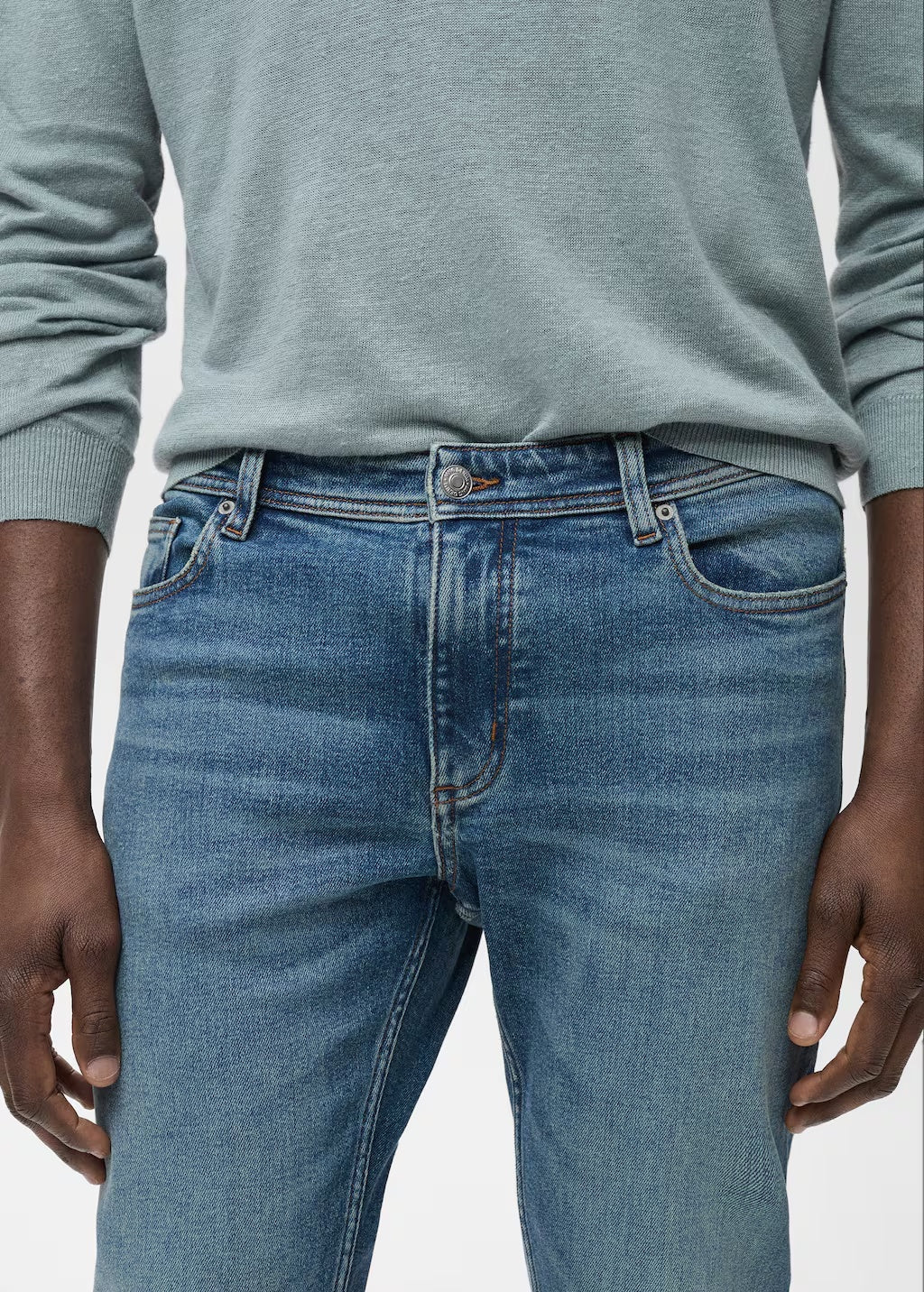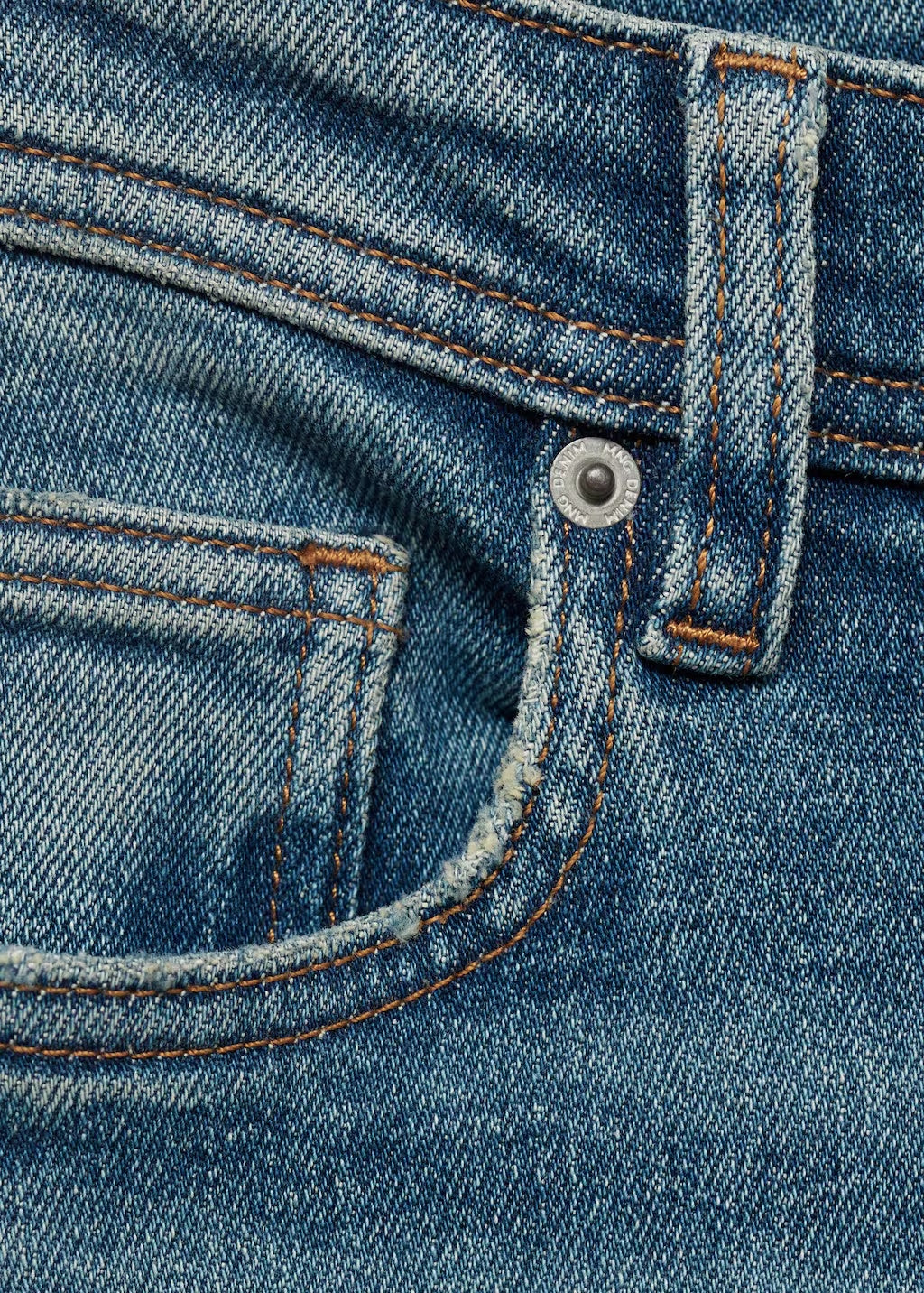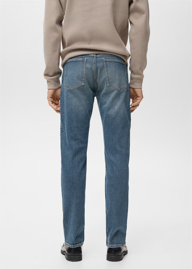 The model is 190 cm tall and wears a size 42. Slim fit. Cotton fabric. Denim jeans style. Button and zip fastening. Side pockets. Coin pocket. Two patch pockets at the back. Standard Length. Slim Silhouette. Regular Waist. Five pockets. Two front welt pockets. Medium faded wash. Denim-style cotton fabric. Belt loops.Product Code: 17011226-TM