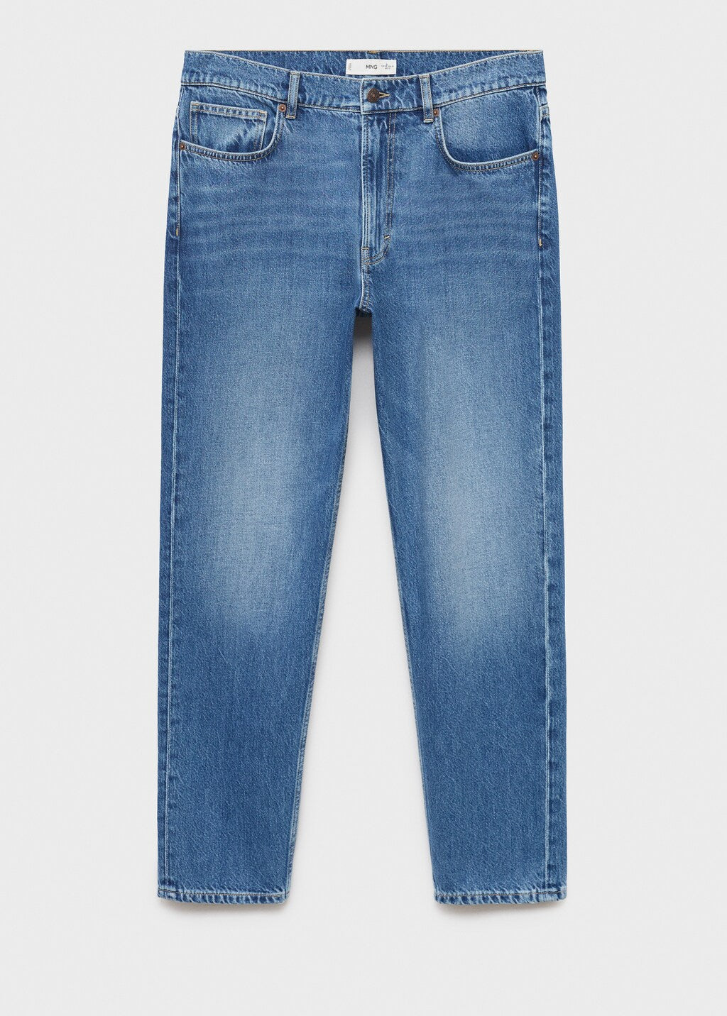 100% cotton fabric. Tapered fit. Dark wash. Two front patch pockets. Coin pocket. Two patch pockets at the back. Belt loops. Zip and button fastening. The model is 190 cm tall and wears a size M.Product Code: 17024417-TO