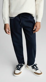 Fabric with cotton. Medium waist. Elastic waist with drawstring. Two front pockets. Zipped pocket on the front. Zipped pocket on the back. Side length 95.0 cmProduct Code: 87051512-56