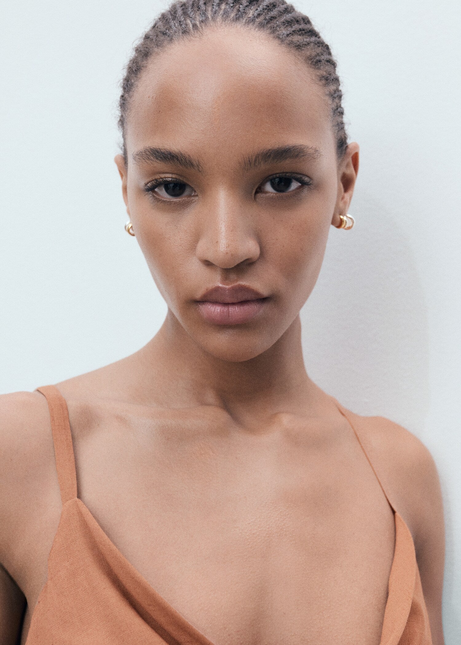 Linen mix. Long design. Straight Design. Low neckline. Draped neck. Sleeveless. Thin adjustable straps. Zip fastening on the back section.Product Code: 17083279-30