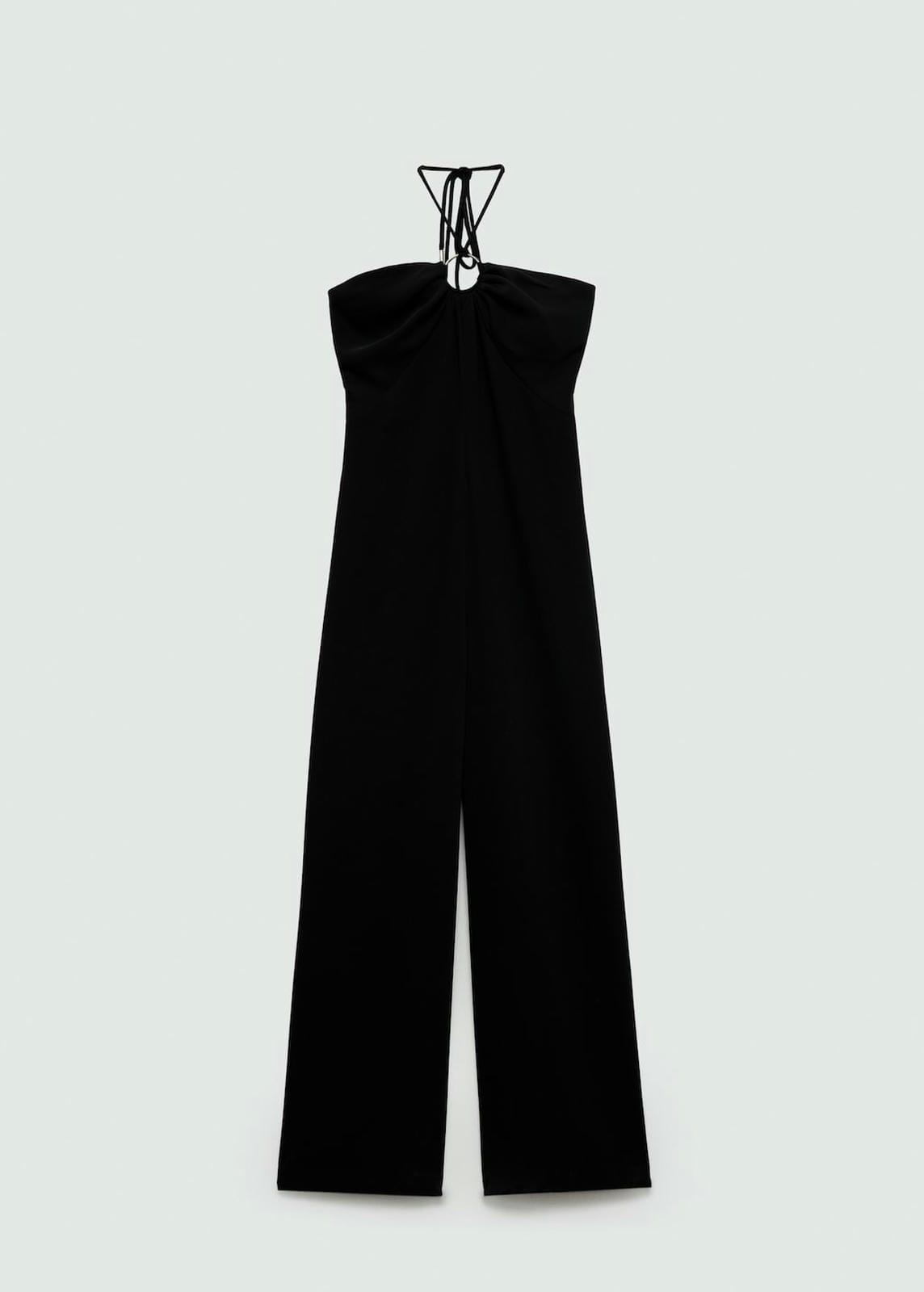 Flowy fabric. Long design. Straight design. Halter neck. Sleeveless. Thin straps. Zip fastening on the back section. Bow fastening on the neck. Metallic ring. Inside leg measurement 67.8 cm. Side length 120.0 cm. Back length 16.3 cmProduct Code: 77020359-99