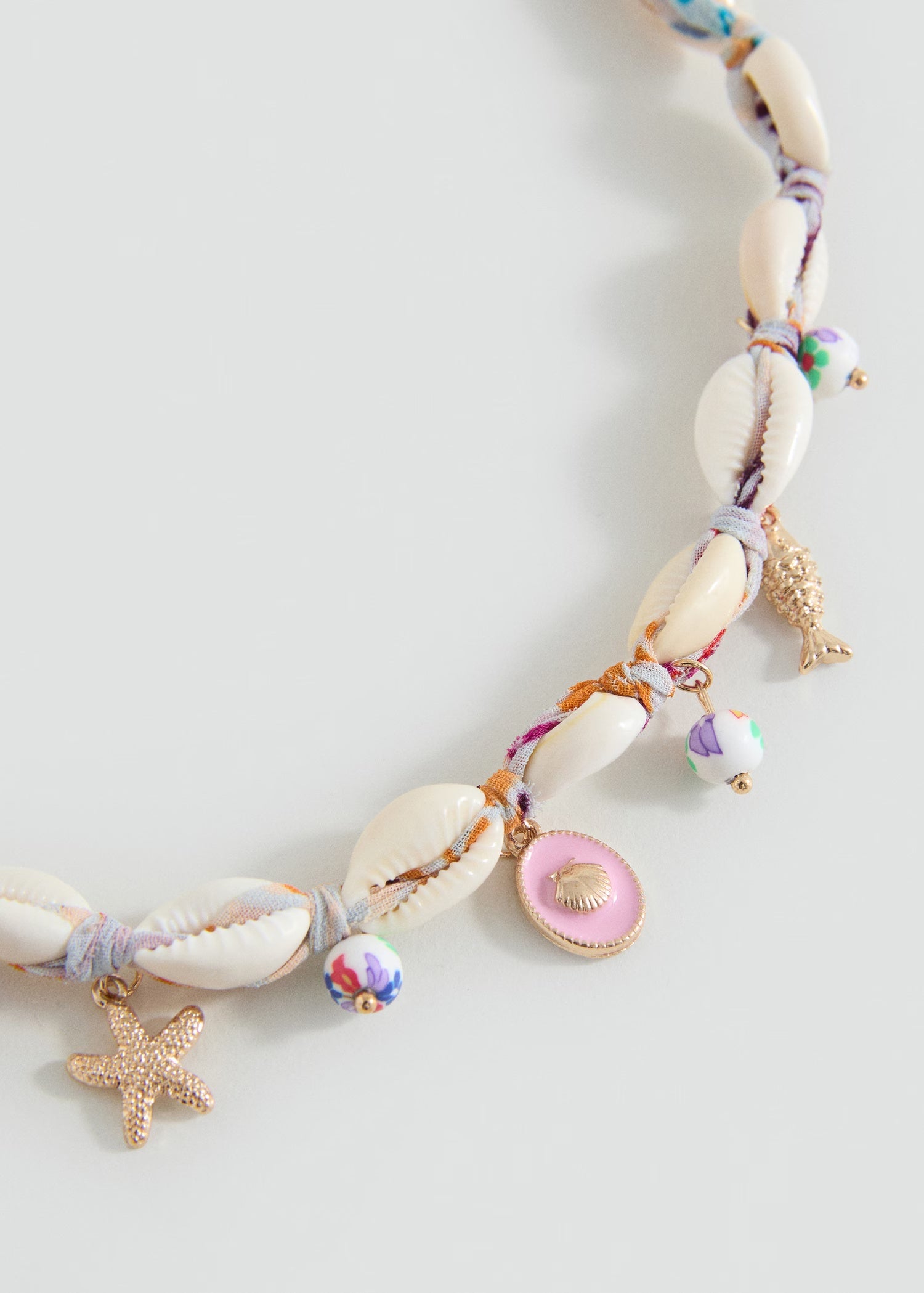 Shell beads. Beaded detail. Multicolour design. Decorated with thread. Metal hook closure on the neck.Product Code: 17001169-07