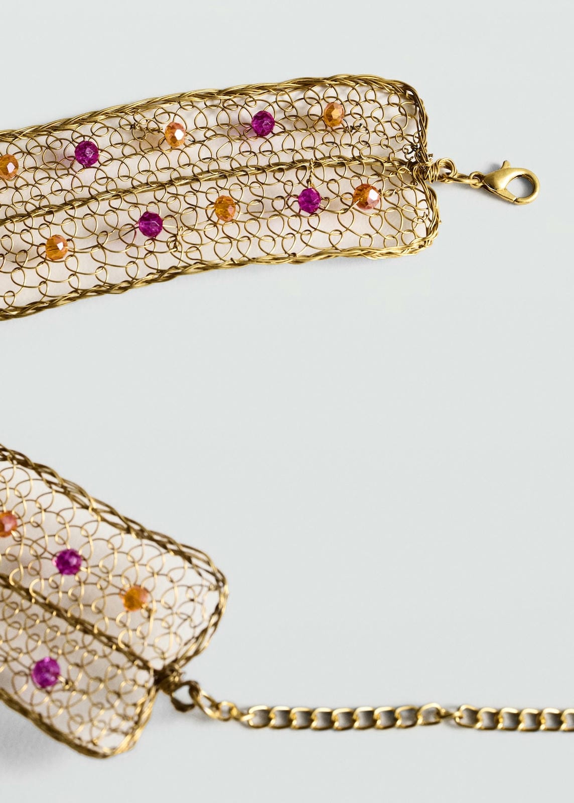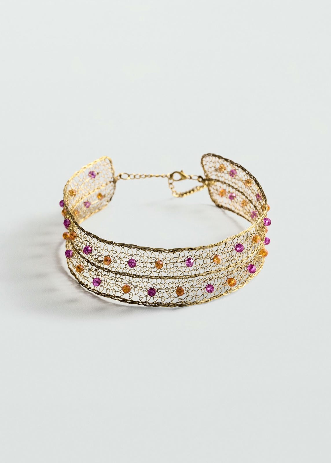Choker style. Iron structure. Decorative crystals details. Zip and carabiner fastening. Adjustable closureProduct Code: 77040600-OR