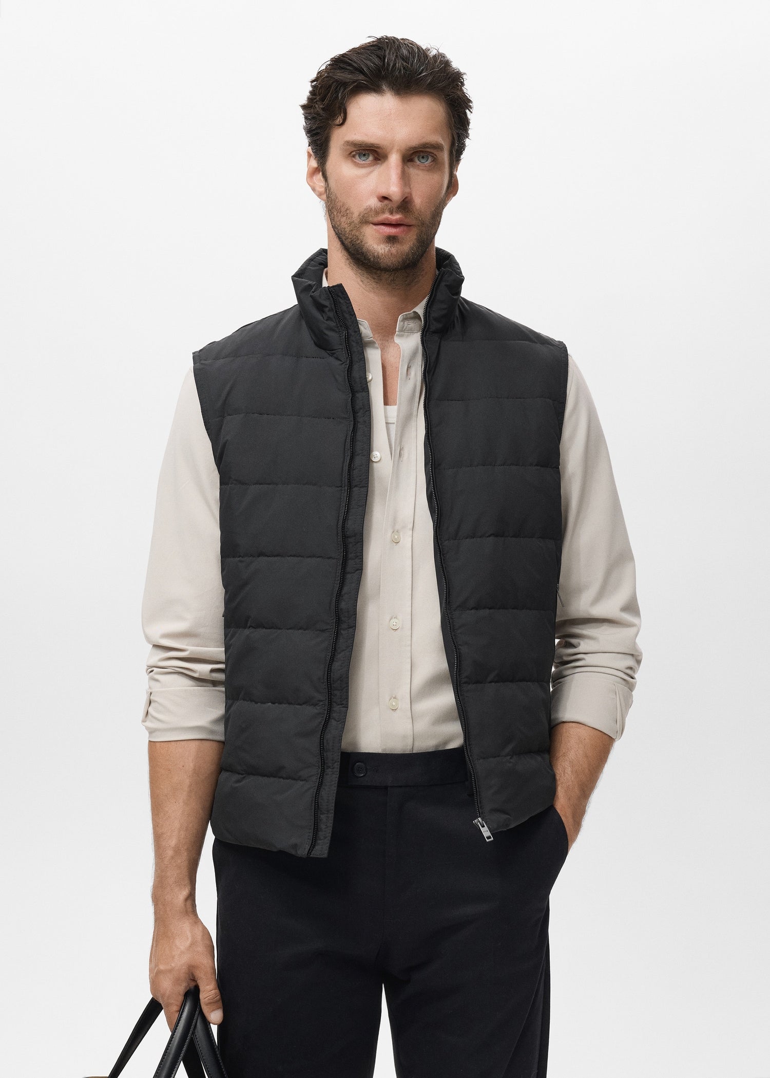Water Repellent: Technical water-repellent fabric. Straight silhouette. Down and feather filling. Quilted design. Two front welt pockets with zipped closures. Two inner zipped pockets. Sleeveless. Front zip closure. Packable: The garment has an inside pocket for self-storage.Product Code: 17065968-99