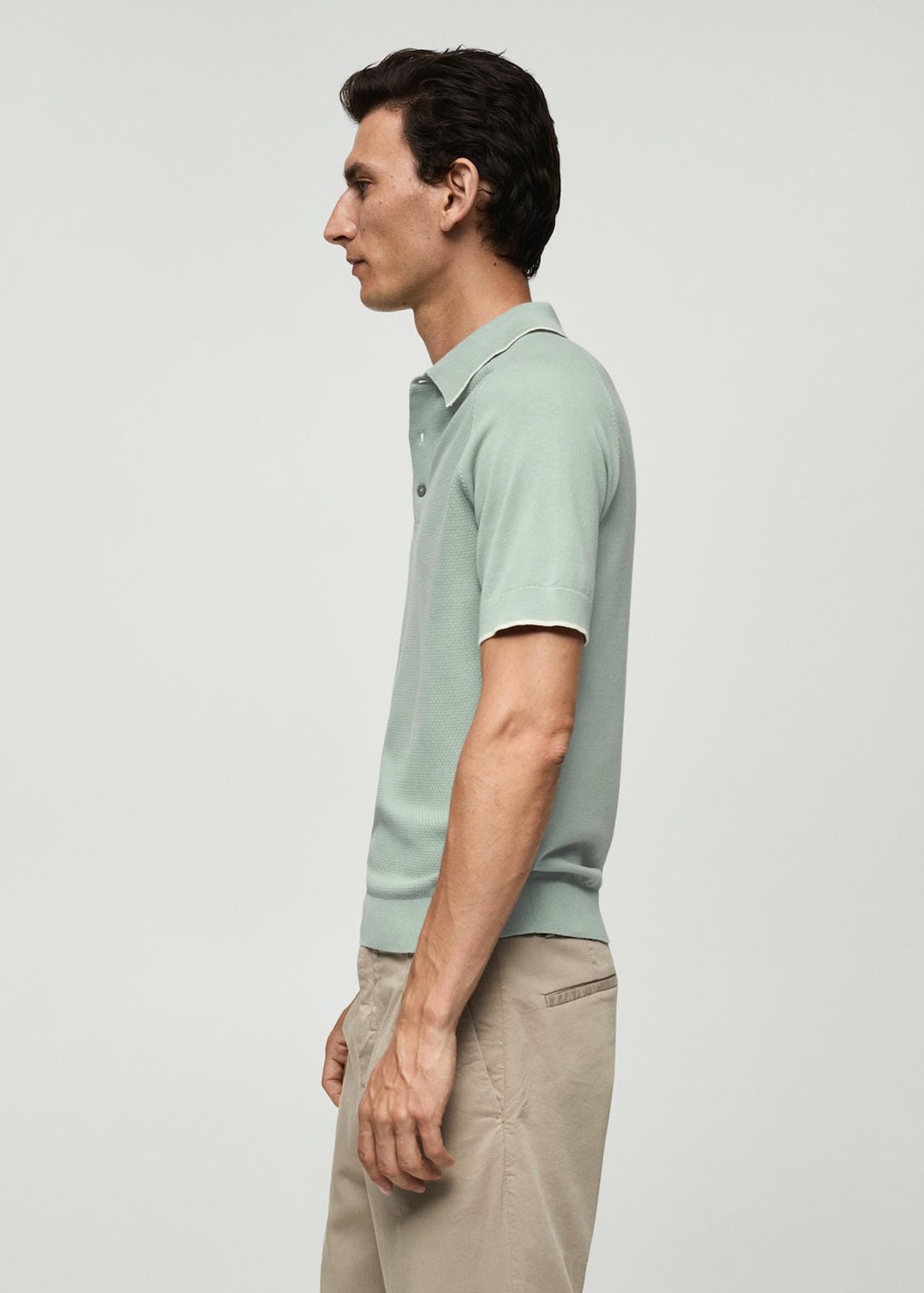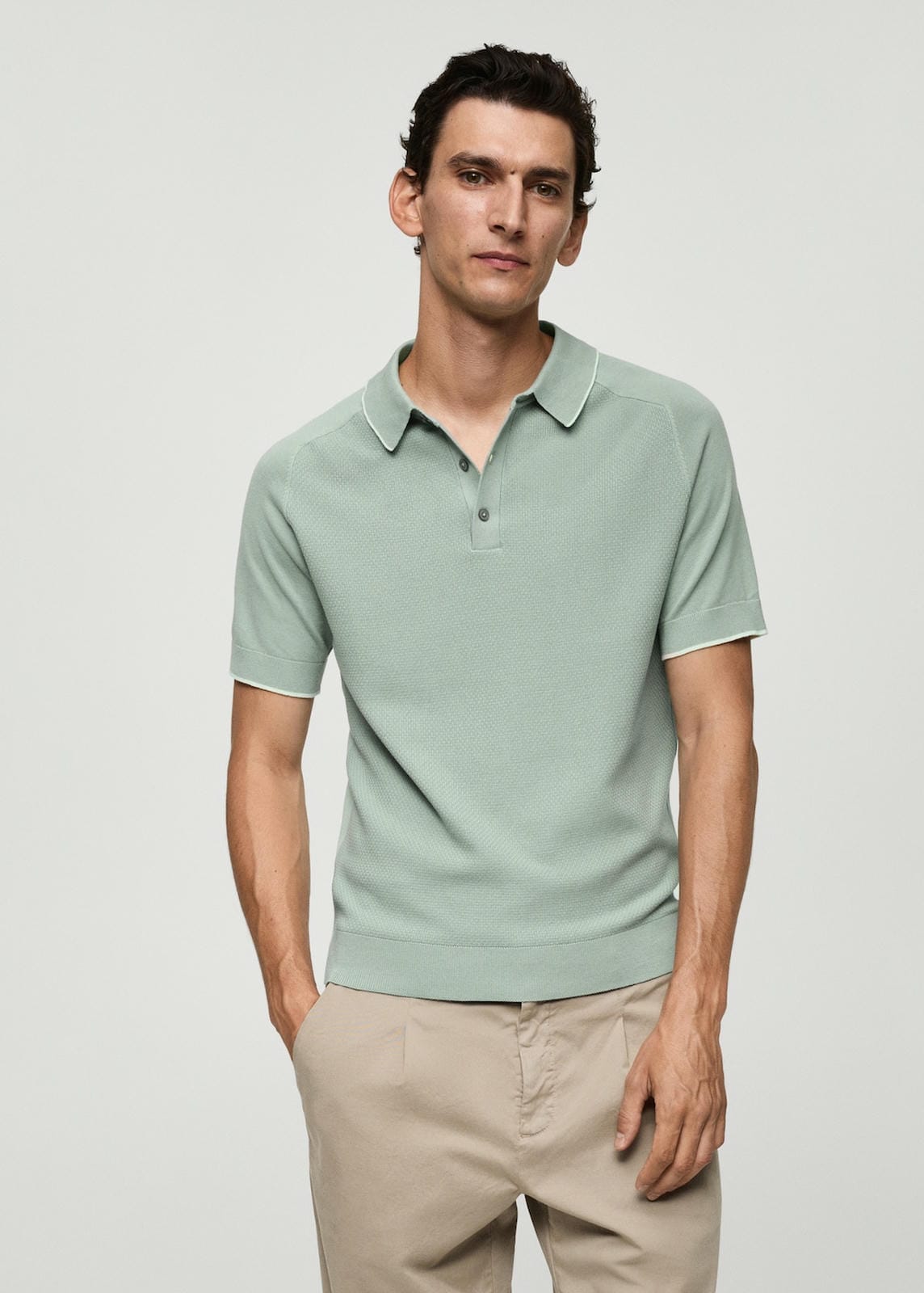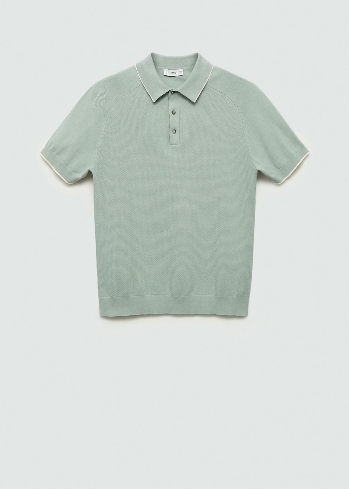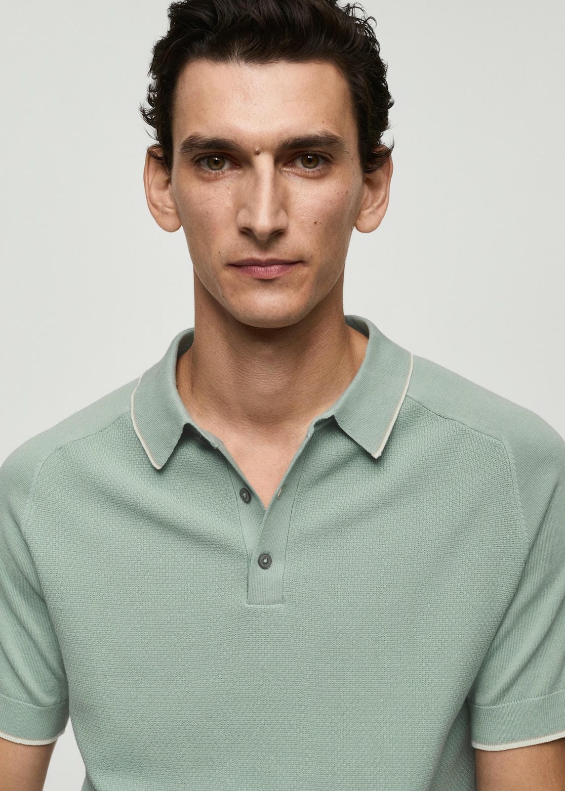 Neck closure. Fine knit fabric. Micro-structure finish. Short sleeve. Short sleeves with contrast piping. Straight hem. The model is 190 cm tall and is wearing a size M. Standard design. Straight design. Polo neck. Cotton-blend fabric. Zip closure at the neck. Back length 71.5 cmProduct Code: 77037699-45