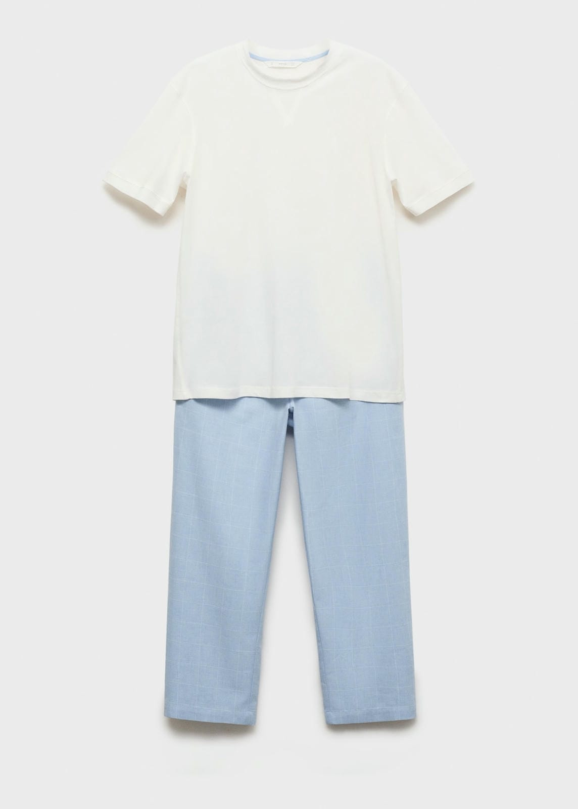 100% cotton fabric. T-shirt and pyjama trousers pack. T-shirt. Round neck. Gingham check long trousers. Elasticated waist. Two side pockets. Cloth bag includedProduct Code: 77025979-50