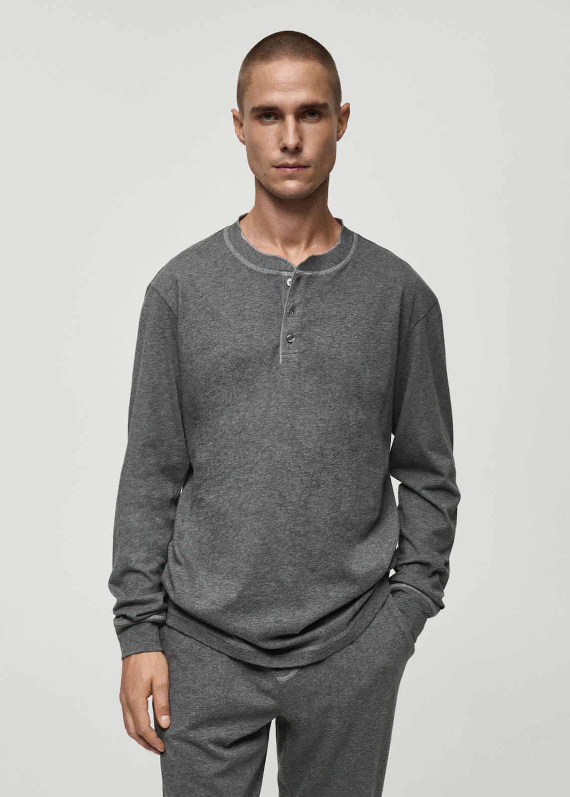T-shirt and pyjama trousers pack. Trousers with side pockets. T-shirt with mao collar and button closure. Elastic trims. Includes a bag to storeProduct Code: 77055978-92