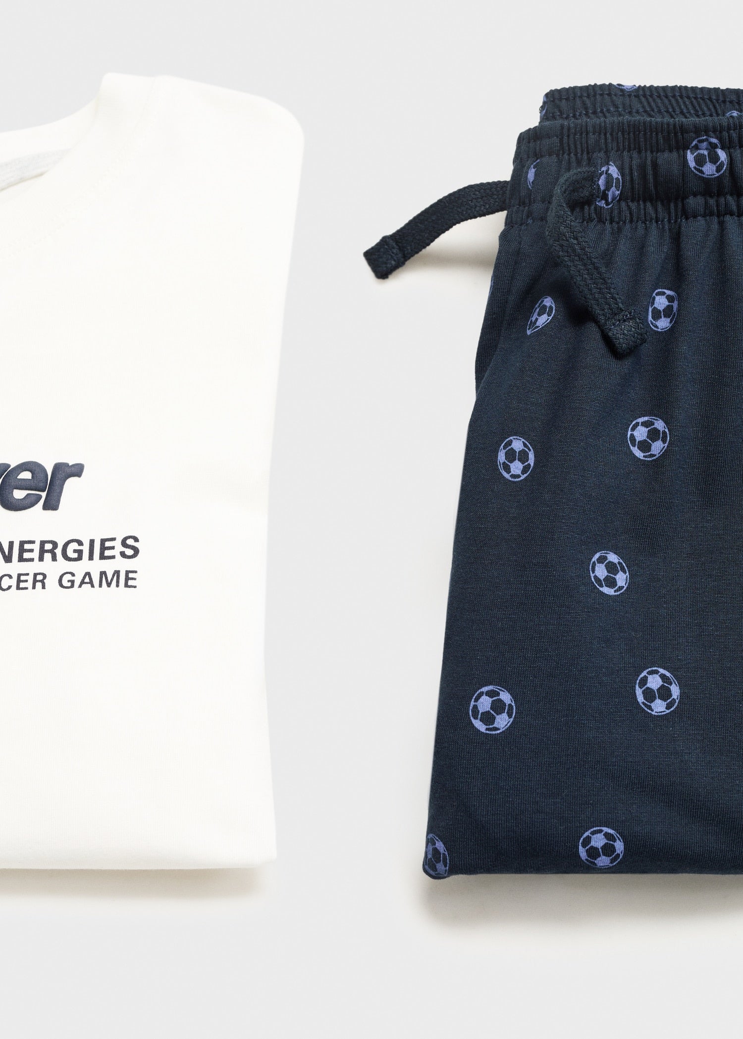 100% cotton fabric. Long design. Printed design. Sporty design. Embossed embossed message on the chest. Round neck. Long sleeve. Trousers with elastic waistband and adjustable drawstring.Product Code: 17054094-02