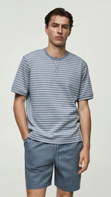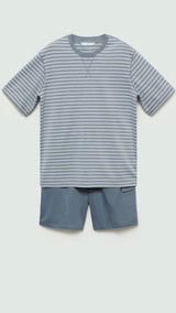 T-shirt and pyjama trousers pack. Cloth bag included. Striped cotton t-shirt. Short sleeve. Round neck. Straight hem. Shorts. Two patch pockets and flap on the leg. Elastic waist with adjustable drawstring. The model is 185 cm tall and is wearing a size MProduct Code: 77050591-52