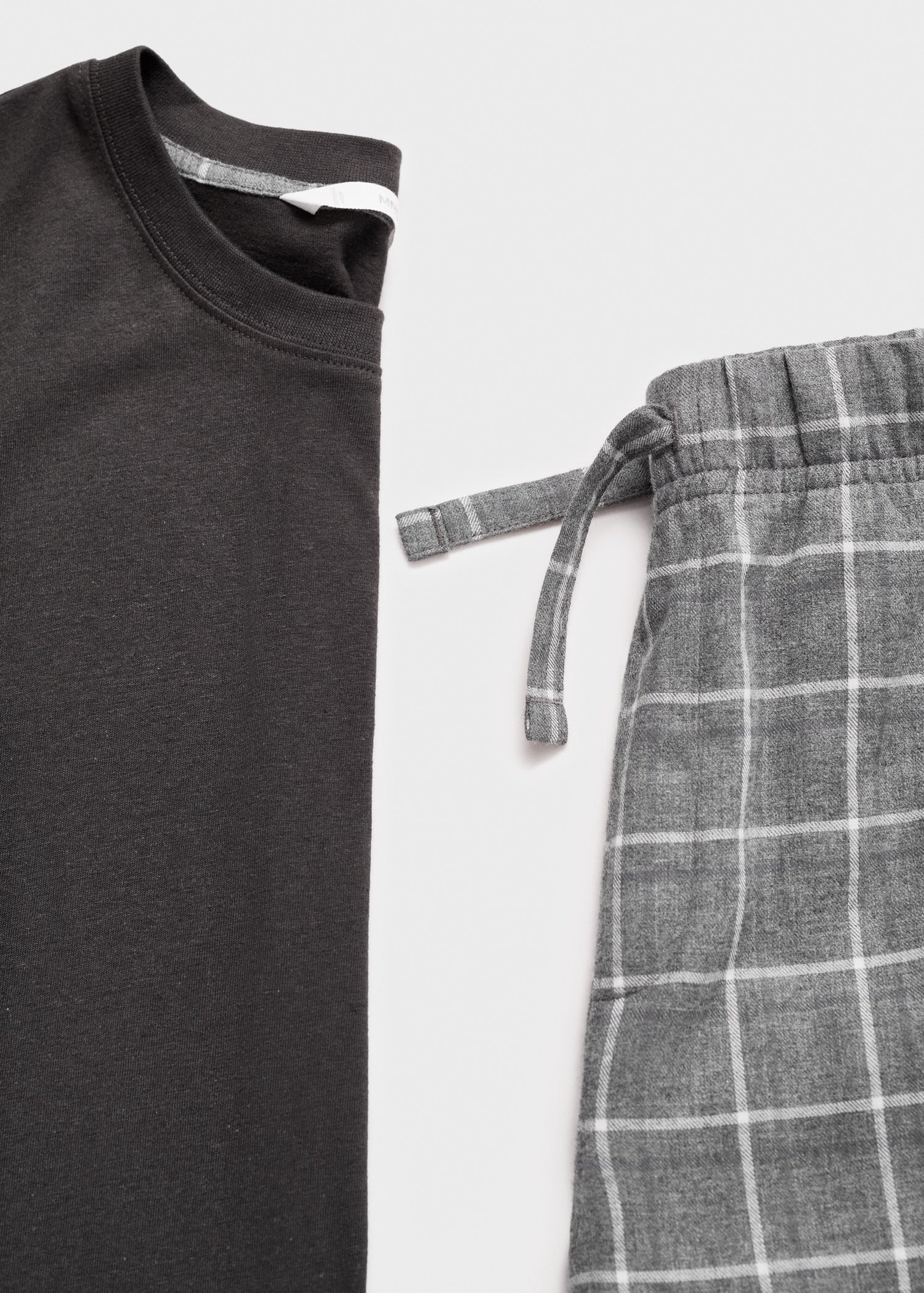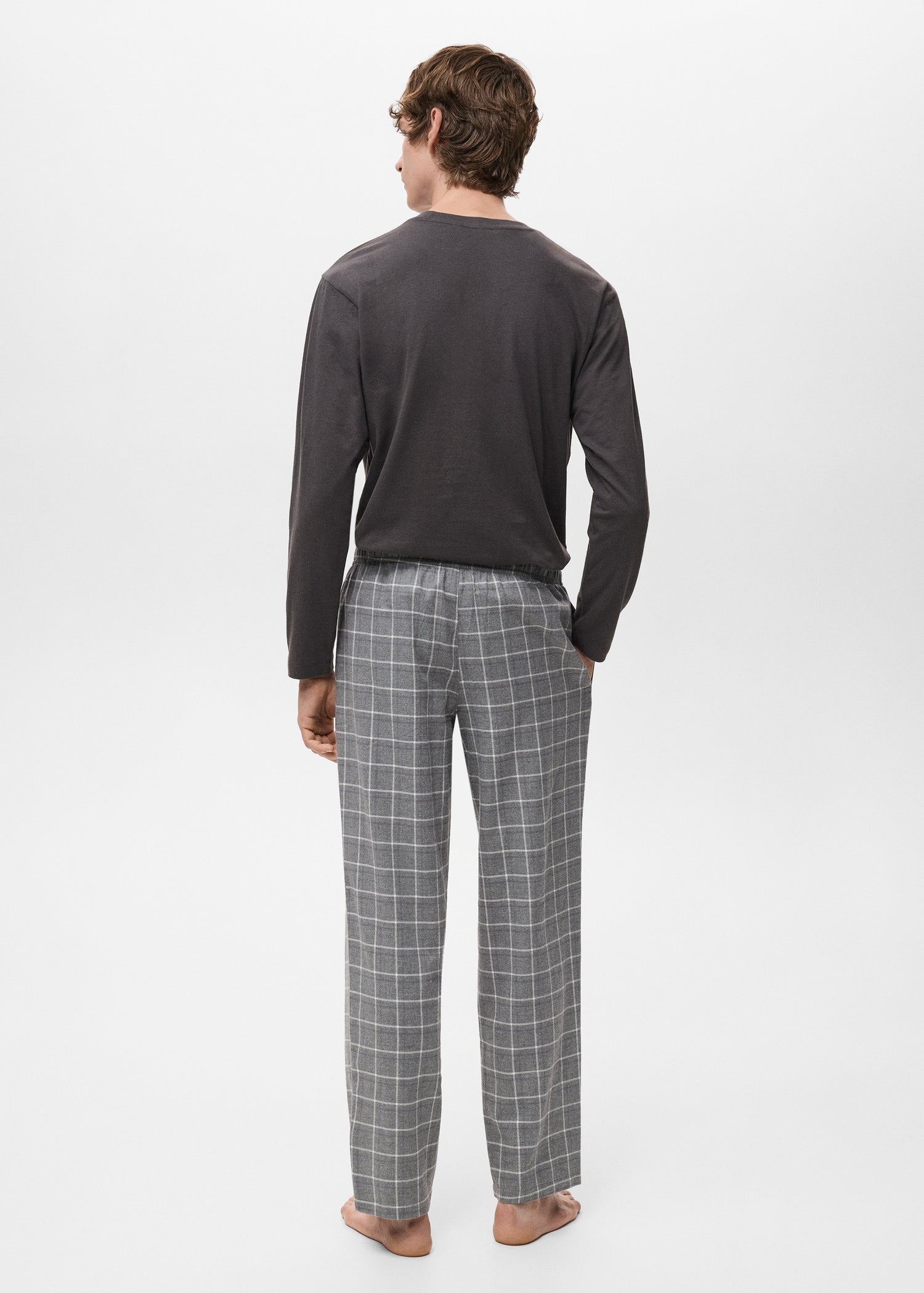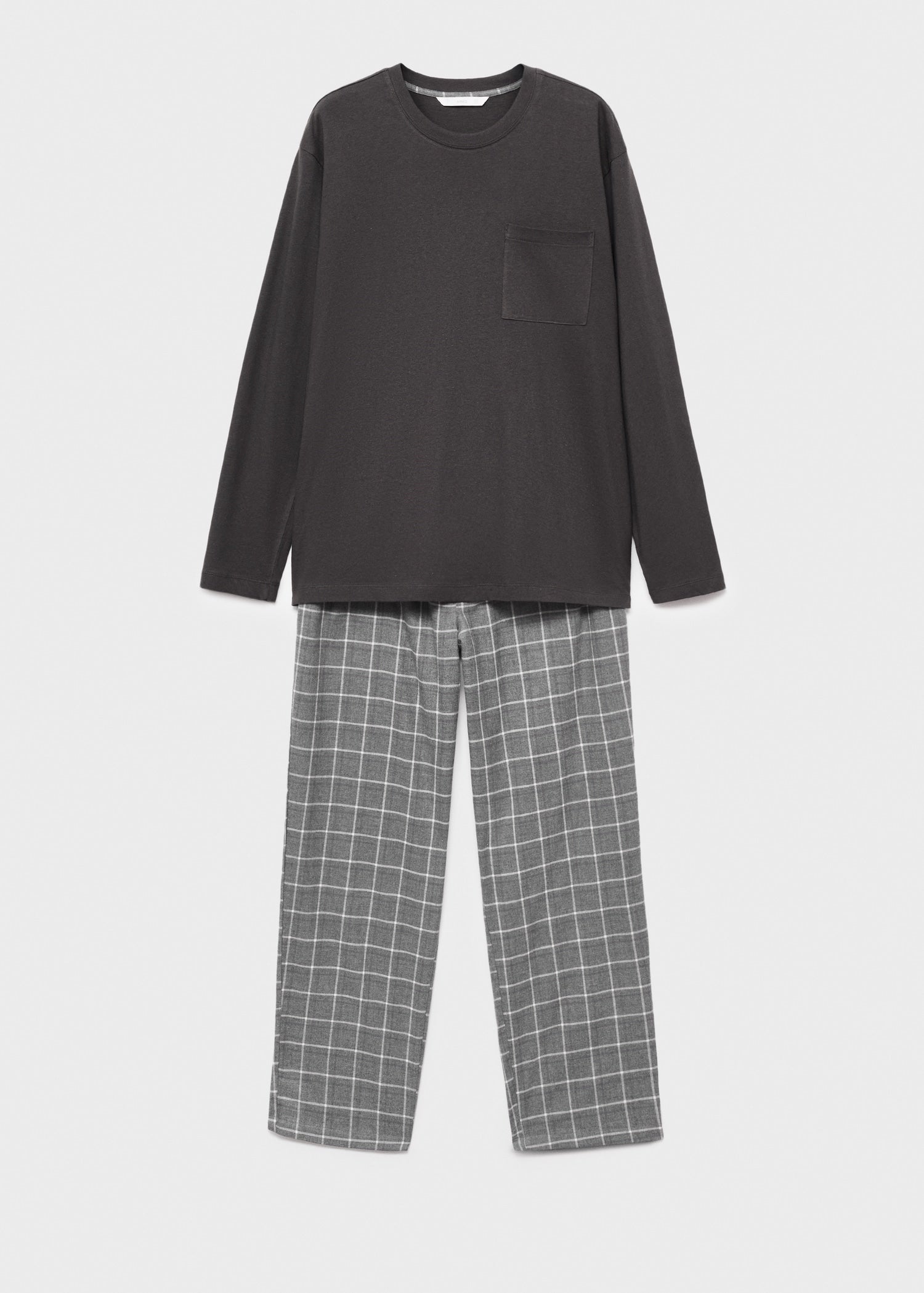 Cotton and linen fabric. Long sleeve. Patch pocket on the chest. Gingham check long trousers. Adjustable inner drawstring. Cloth bag included.Product Code: 17075973-92