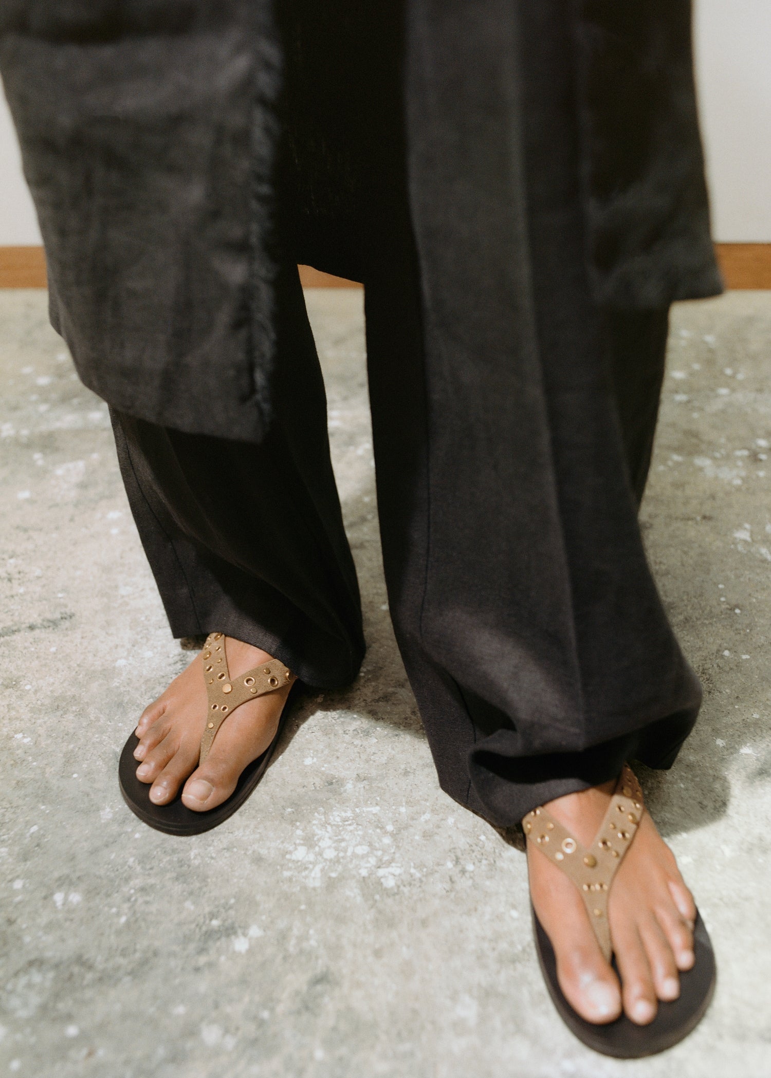 100% bovine leather. Suede. Straps design. Slingback design. Eyelets detail. Flat. No Fastening.Product Code: 17041121-37