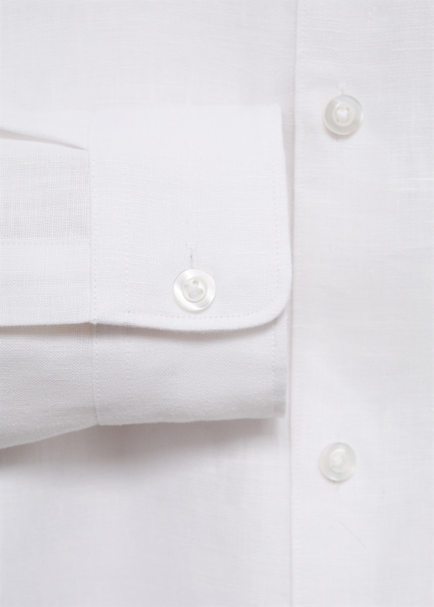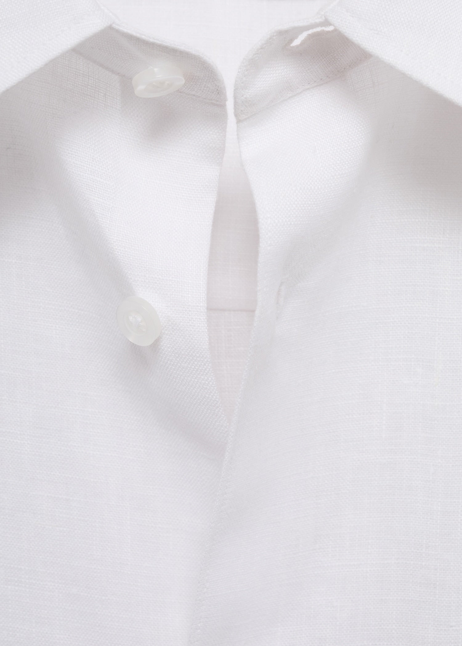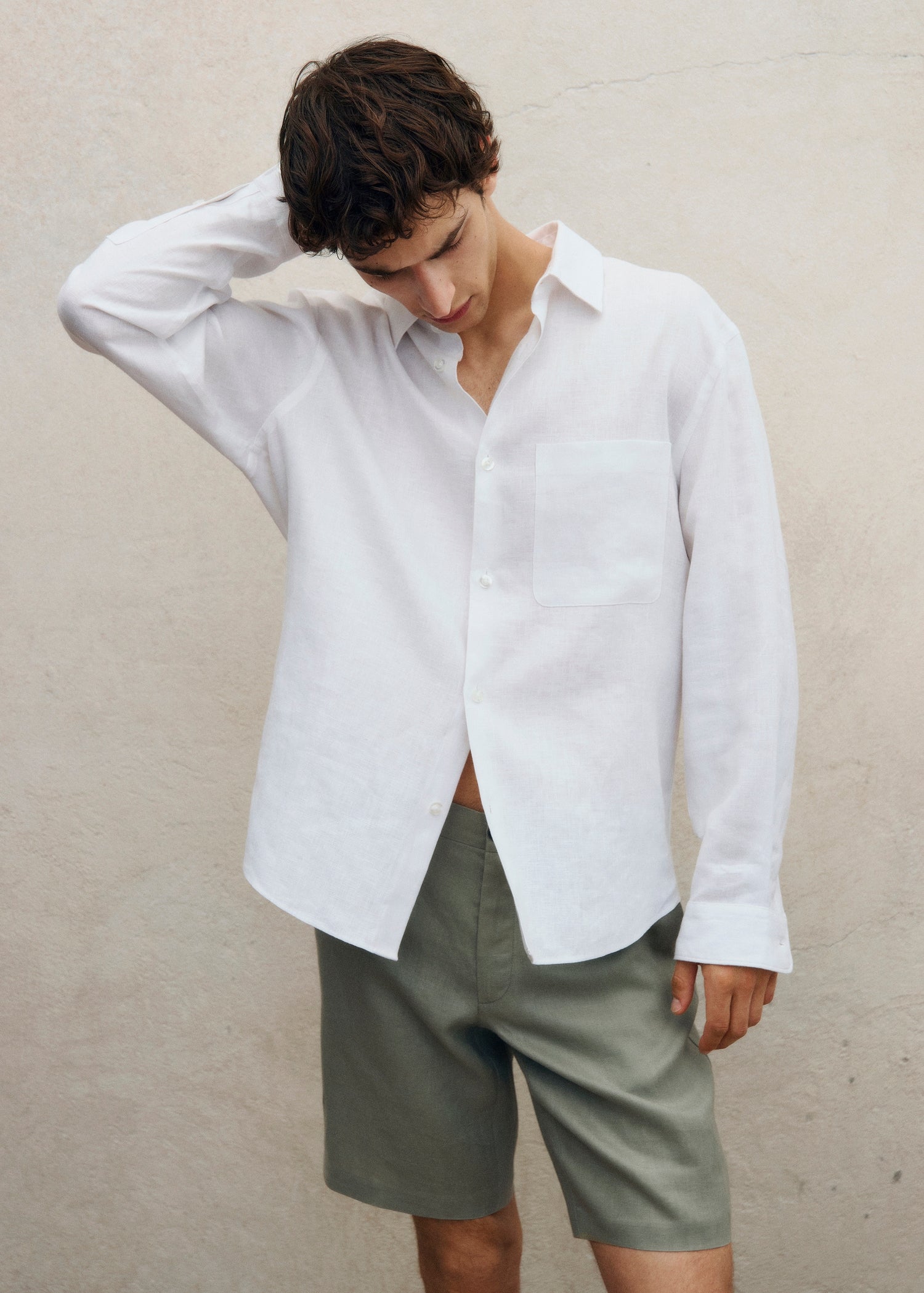 Relaxed Silhouette. 100% linen fabric. Shirt Collar. Front closure with buttons. Patch pocket on the chest. Long sleeve. Buttoned cuffs. Rounded base. Detail of rear calipers.Product Code: 17072912-02