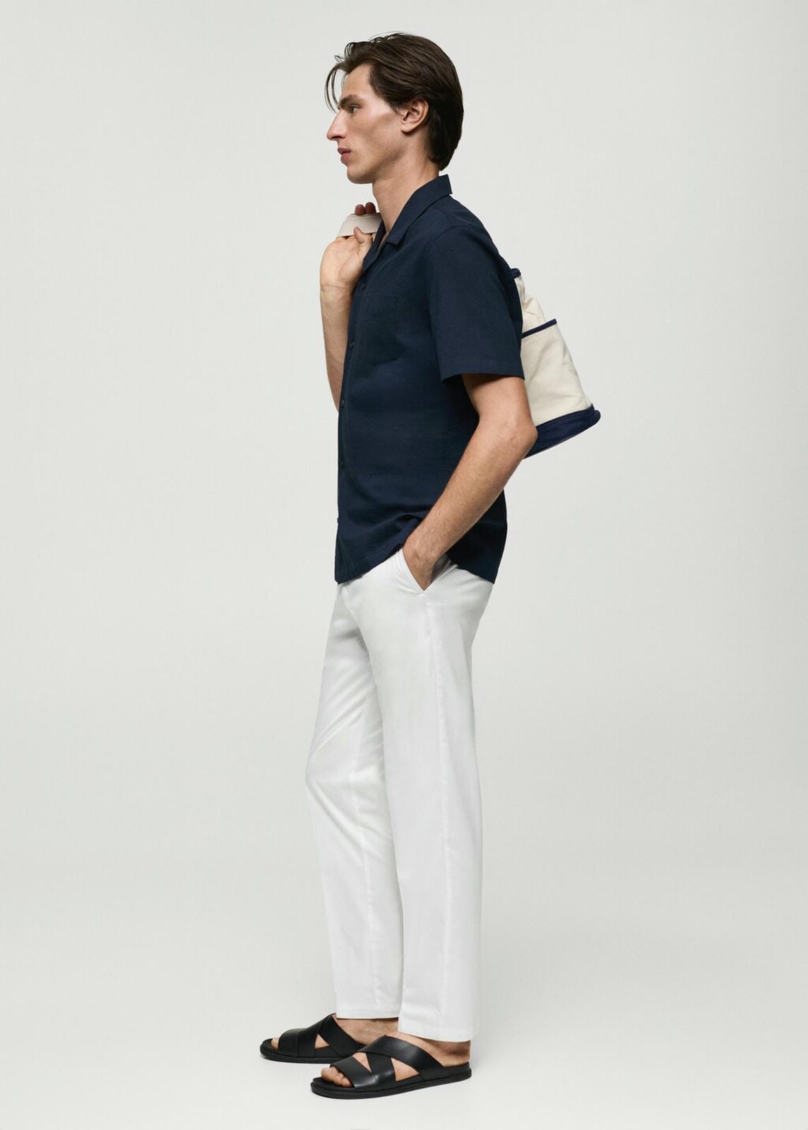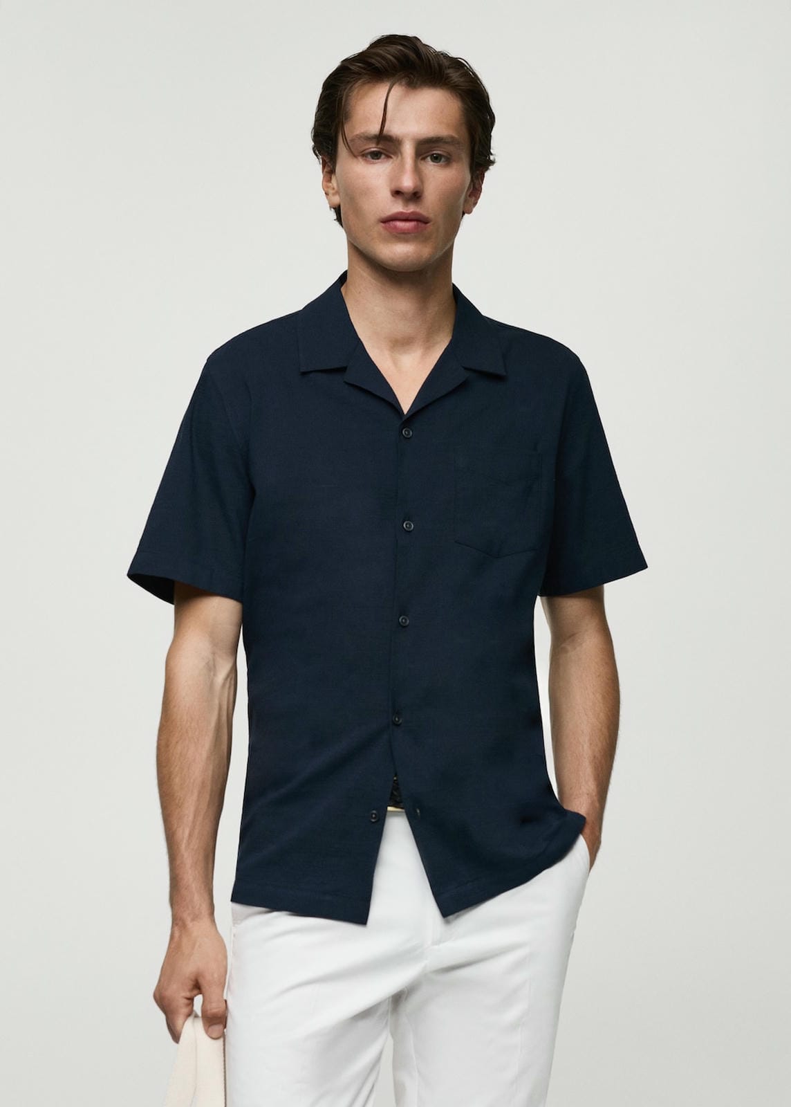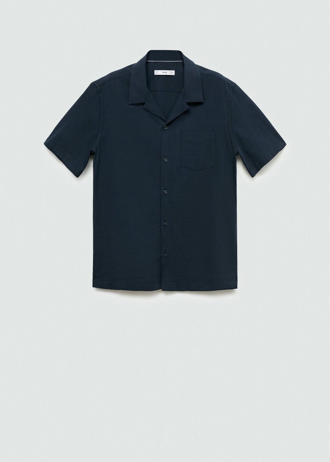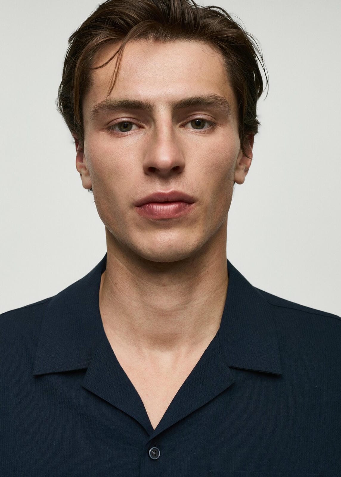 Regular fit. Seersucker effect. Bowling collar. Button fastening at the front. Patch pocket on the chest. Short sleeve. Straight hem. The model is 185 cm tall and is wearing a size M. 100% cotton fabric. Side length 48.4 cm. Back length 79.5 cmProduct Code: 77080571-56