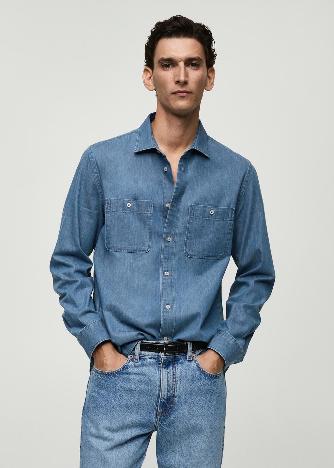 Regular fit. Shirt-style collar. Two-buttoned flap chest pockets. Backstitched details. The model is 190 cm tall and is wearing a size M. 100% cotton fabric. Long buttoned sleeves. Front closure with buttons. Rounded base. Side length 43.6 cm. Back length 79.0 cmProduct Code: 77024454-TM