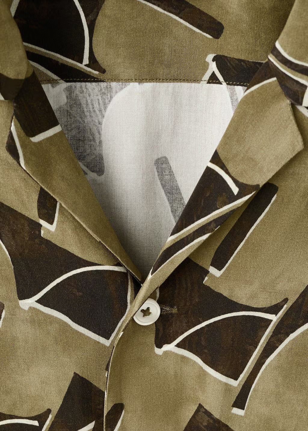100% viscose. Regular fit. Fluid fabric. Printed design. Bowling collar. Short sleeves. Front closure with buttons. Straight hem. The model is 190 cm tall and wears a size M.Product Code: 17012930-16