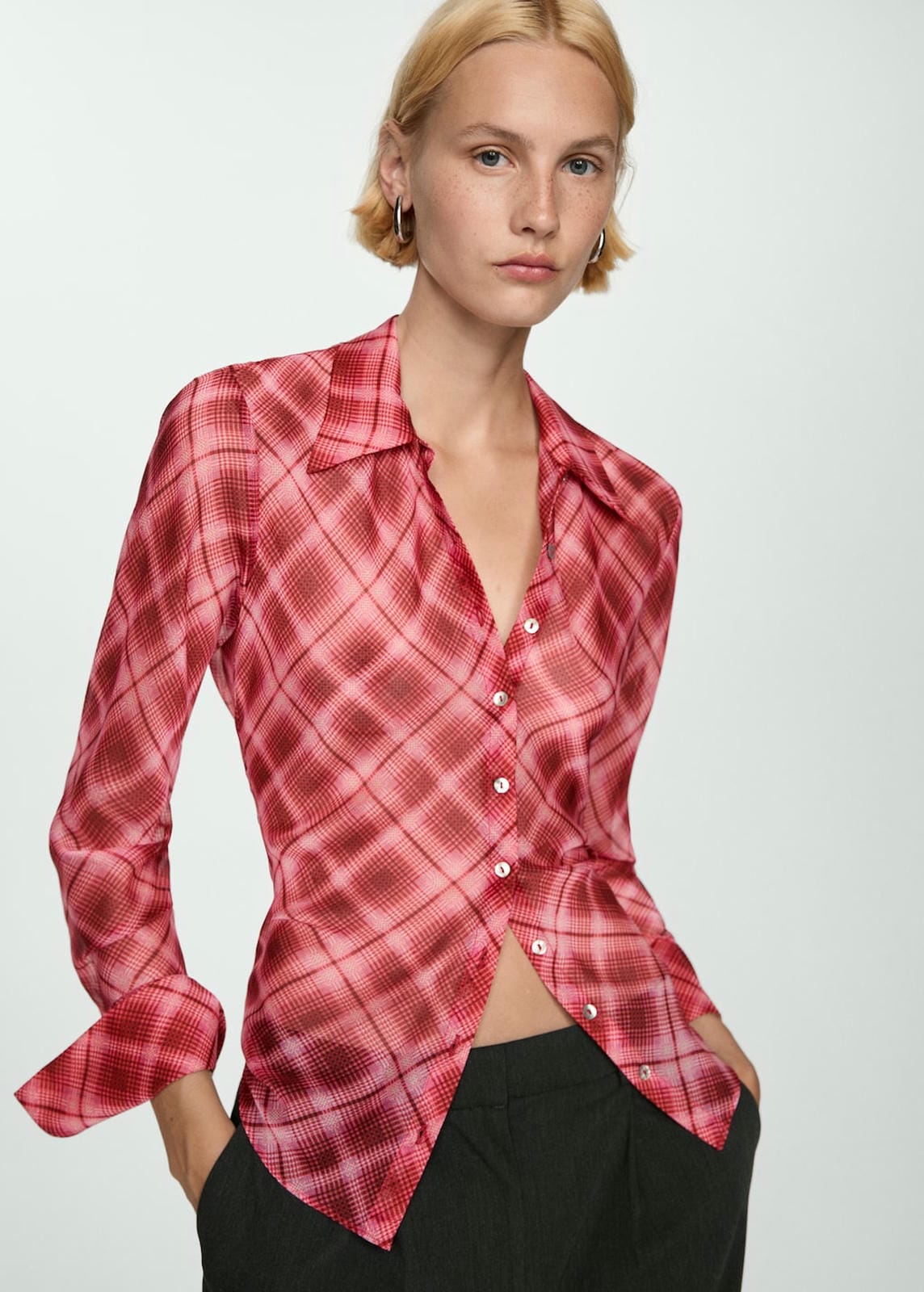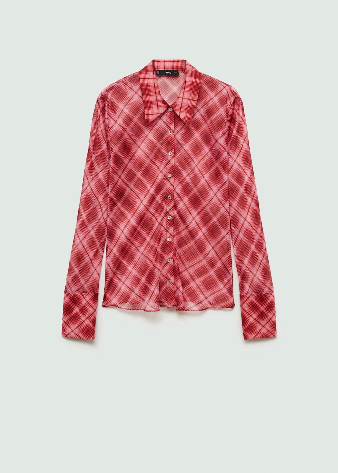 Flowy fabric. Straight design. Checked print. Shirt-style collar. Button fastening on the front section. Long buttoned sleeves. Side length 41.1 cm. Back length 63.4 cmProduct Code: 77004036-76