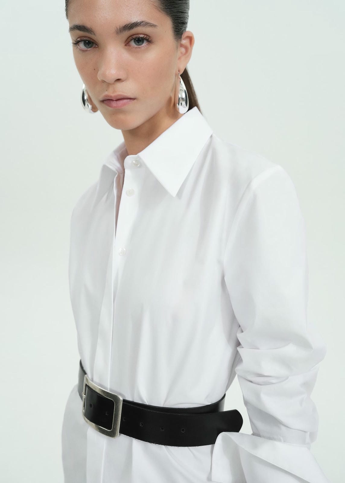 100% cotton fabric. Cotton poplin. Oversize design. Long design. Shirt-style collar. Long sleeve with buttoned cuffs. Concealed button closure on the front. Side slits. The model is 1.77 tall and is wearing a size 36. Party and events collection. Selection Collection. Side length 22.5 cm. Back length 75.0 cmProduct Code: 77099073-02
