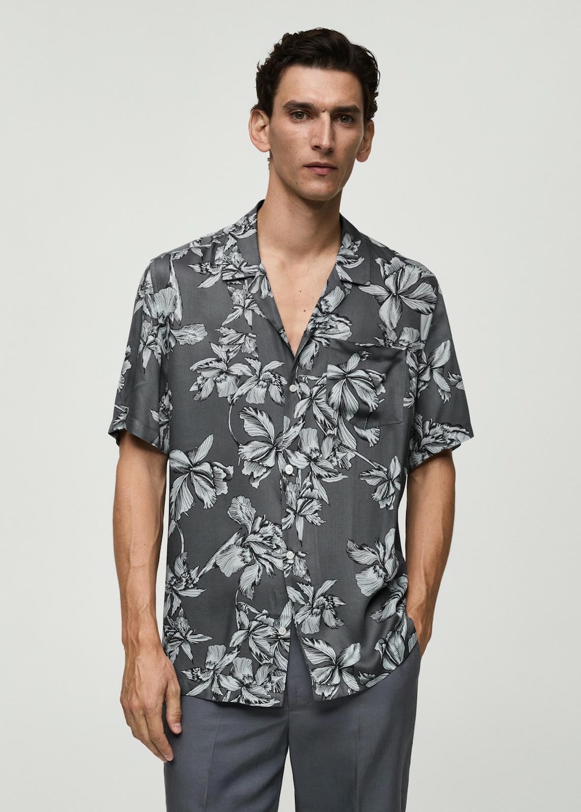 Regular fit. Flowy fabric. Hawaiian print. Patch pocket on the chest. Short sleeve. Bowling collar. Button fastening on the front section. Straight hem. The model is 185 cm tall and is wearing a size M. Side length 47.4 cm. Back length 78.0 cmProduct Code: 77032548-95