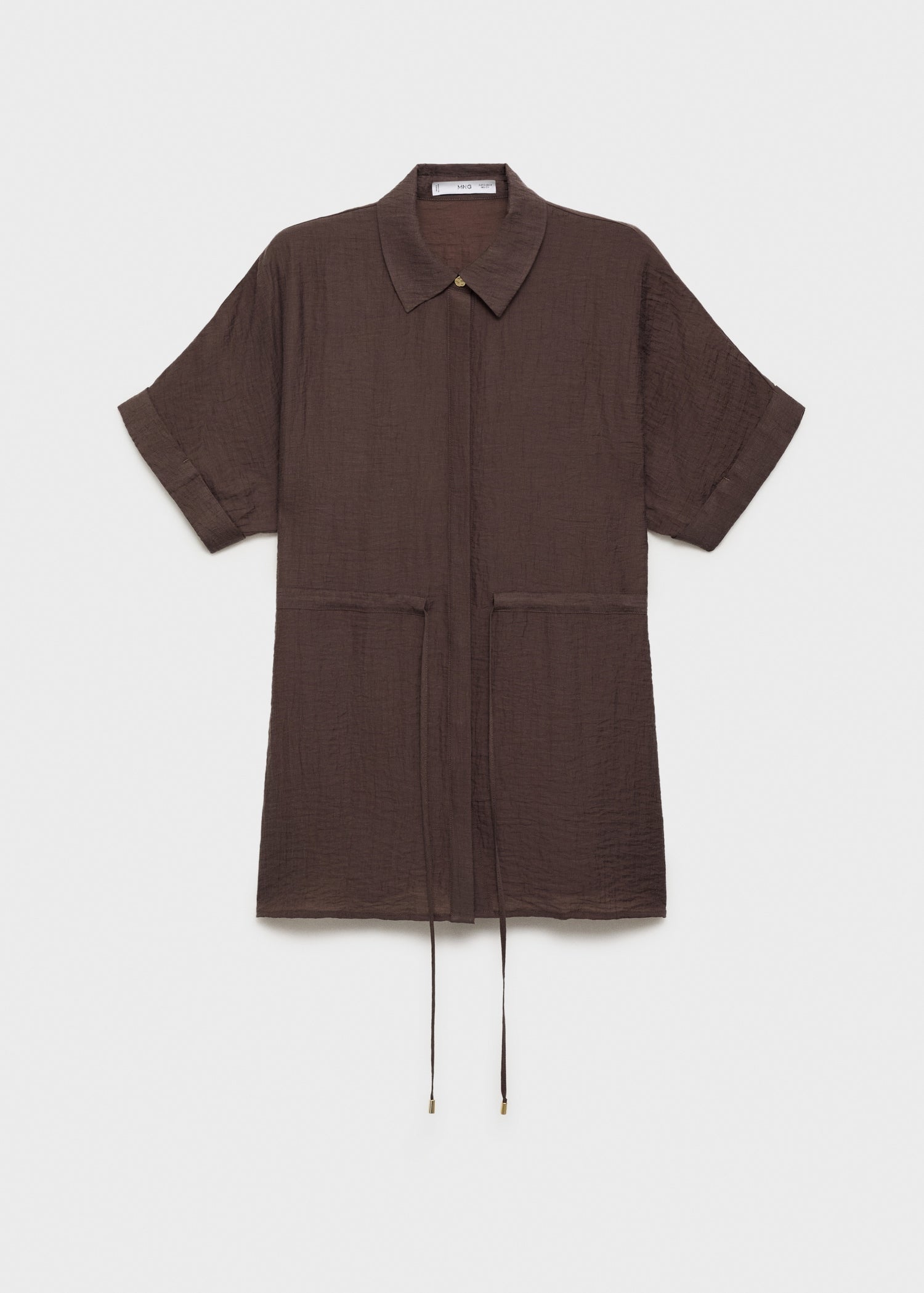 Lyocell-blend fabric. Wrinkled effect. Long design. Shirt Collar. Short sleeves with turn-up. Front closure with buttons. Elastic waist with tie closure. Total look.Product Code: 17092535-32
