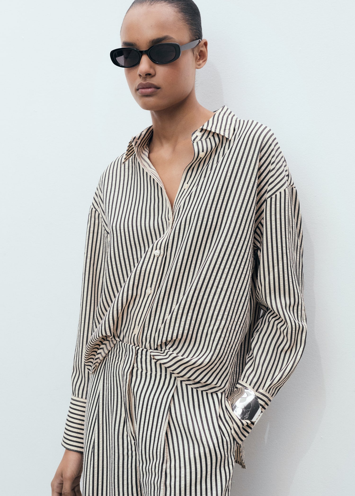 Textured fabric. Stripe design. Oversize design. Shirt Collar. Long buttoned sleeves. Button fastening at the front.Product Code: 87077175-02