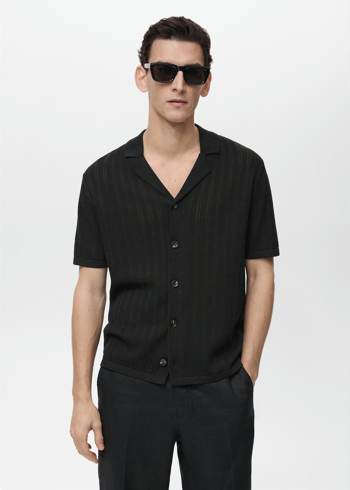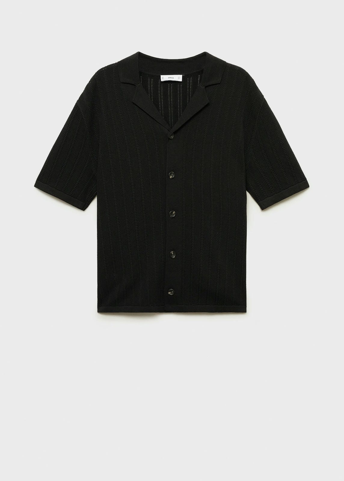 Regular fit. Viscose-blend fabric. Knitted fabric. Openwork details. Bowling collar. Front closure with buttons. Ribbed collar, sleeves and hem. Model is 190 cm tall and wears a size M.Product Code: 87055934-99