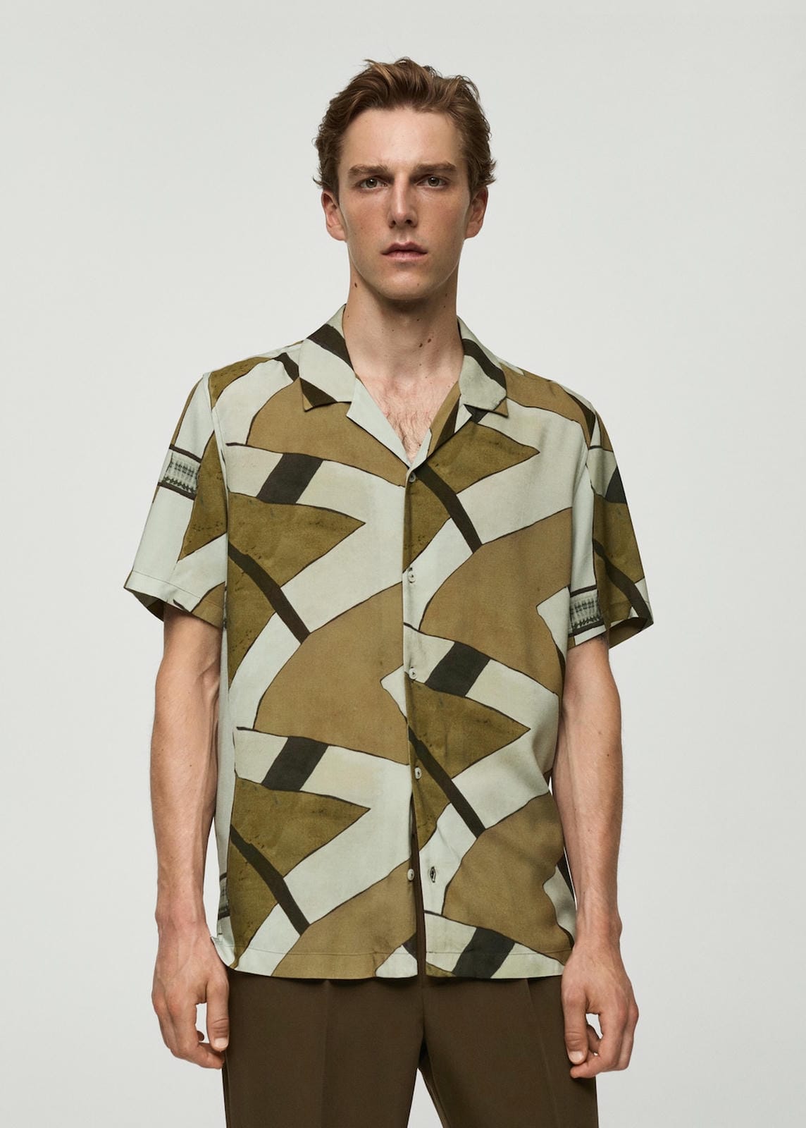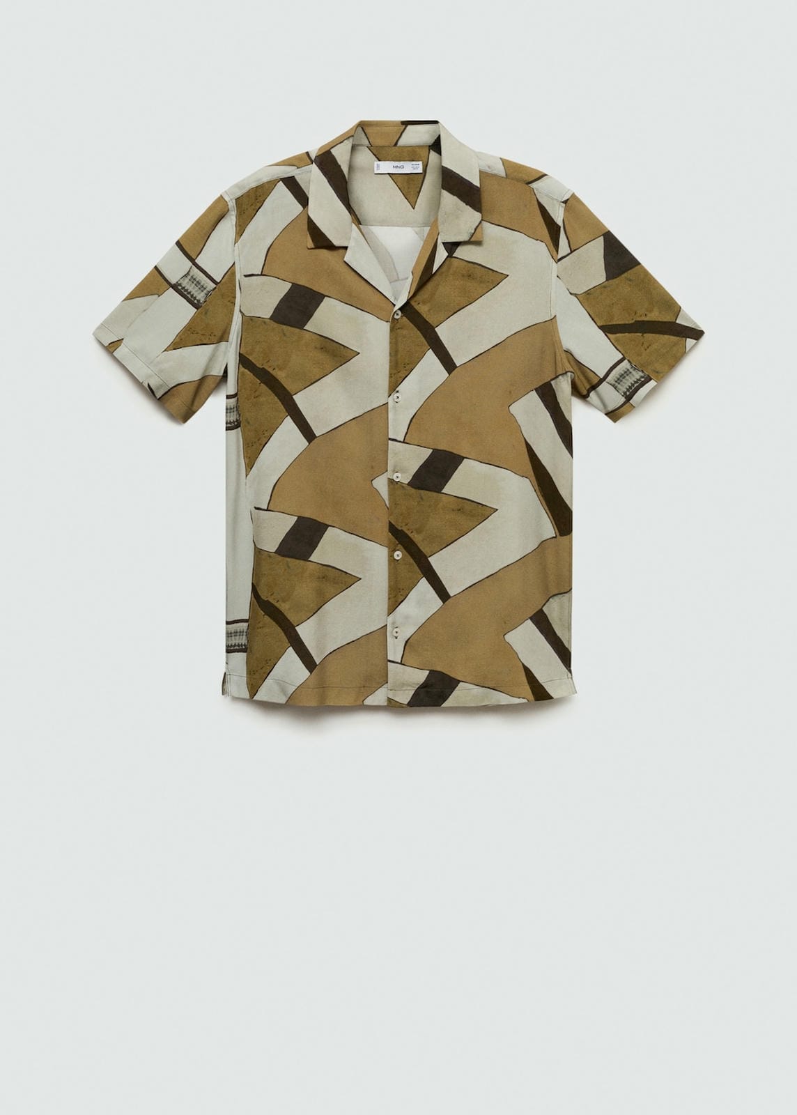 Regular fit. Flowy fabric. Bowling collar. Short sleeve. Geometric print. Hem with side slits. The model is 190 cm tall and is wearing a size M. Front closure with buttons. Side length 47.4 cm. Back length 78.0 cmProduct Code: 77024455-39