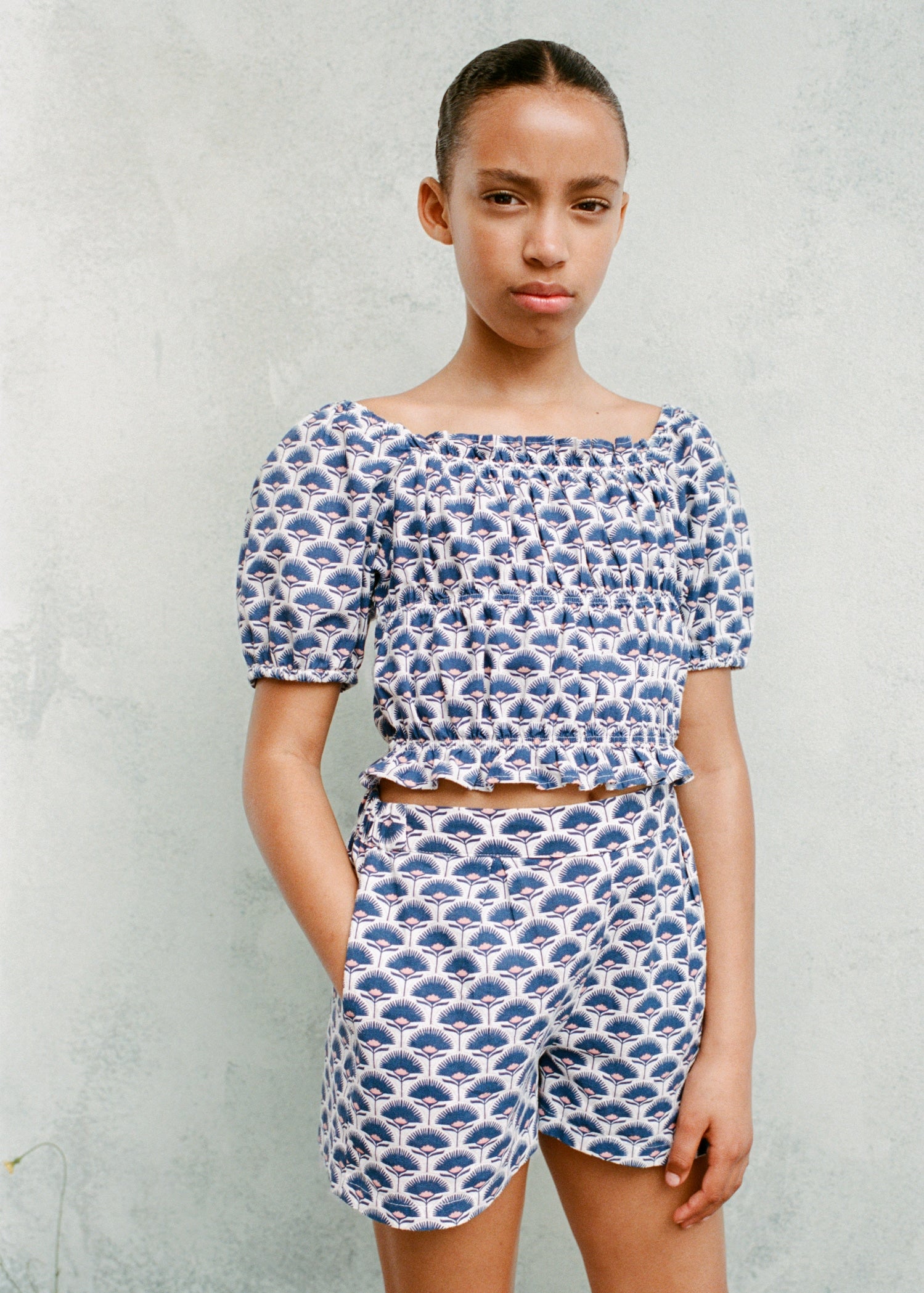 Organic cotton fabric. Linen fabric. Short design. Straight Design. Floral-print design. Elasticated waist. Total look.Product Code: 17061209-52