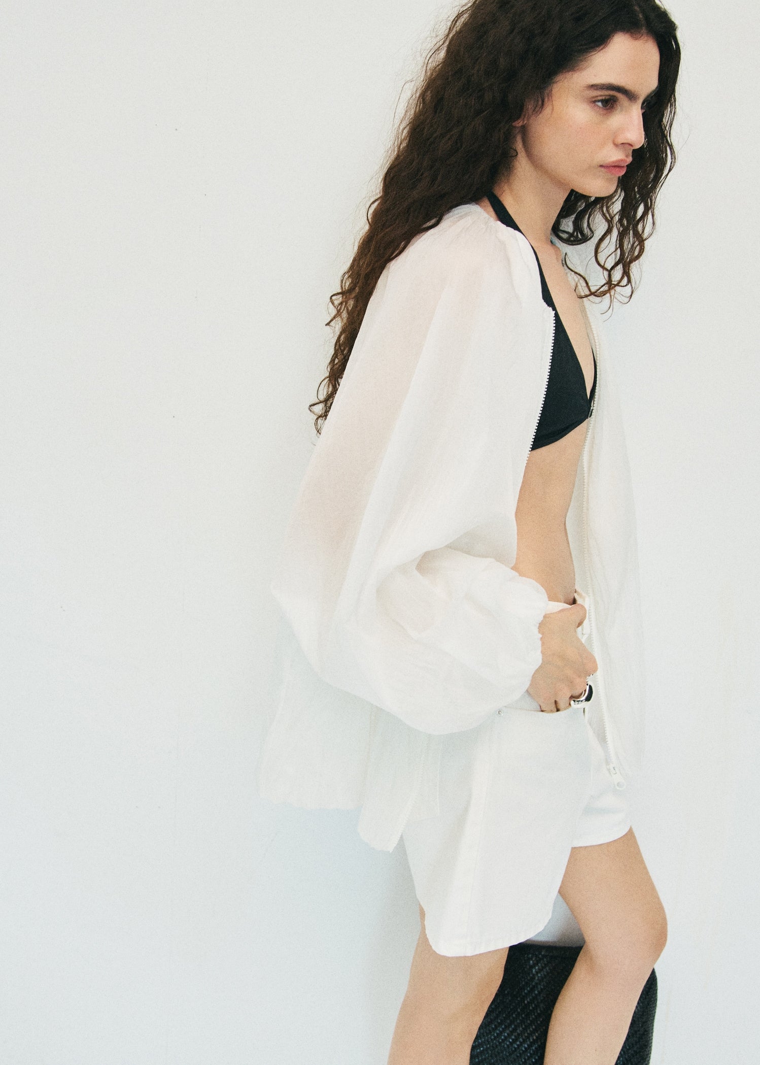 Denim-style cotton fabric. Short design. Straight Design. High waist. Five pockets. Front zipper and button closure.Product Code: 17061192-01