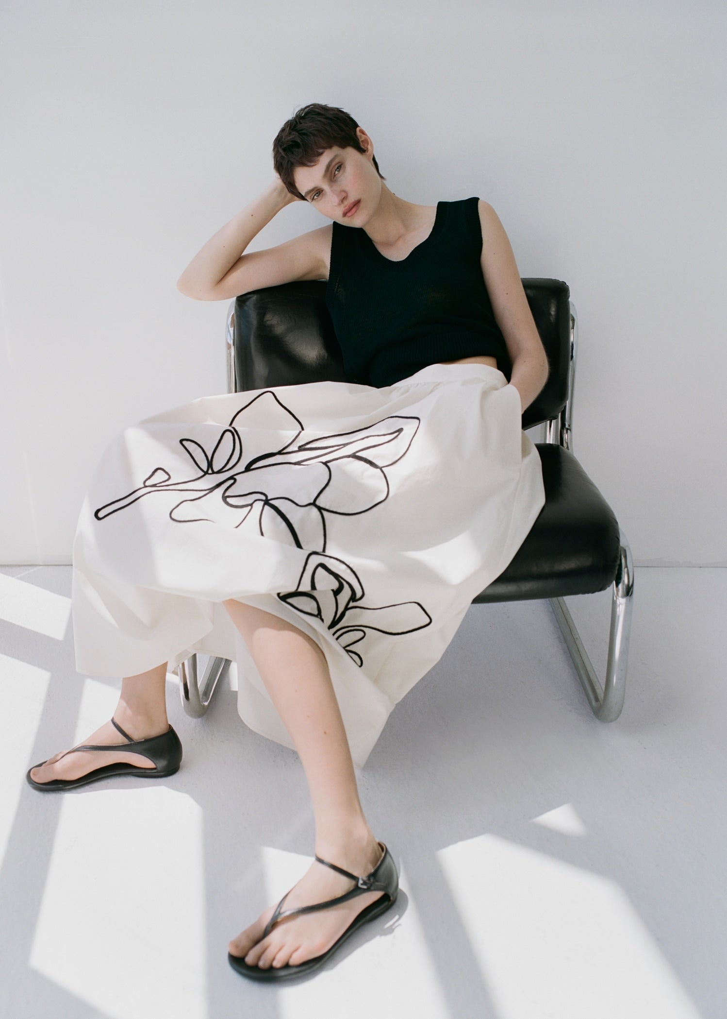 100% cotton fabric. Long design. A-line design. Embroidered detail. Two side pockets. Zip fastening on the back section. 100% cotton lining. Total look.Product Code: 17041174-02