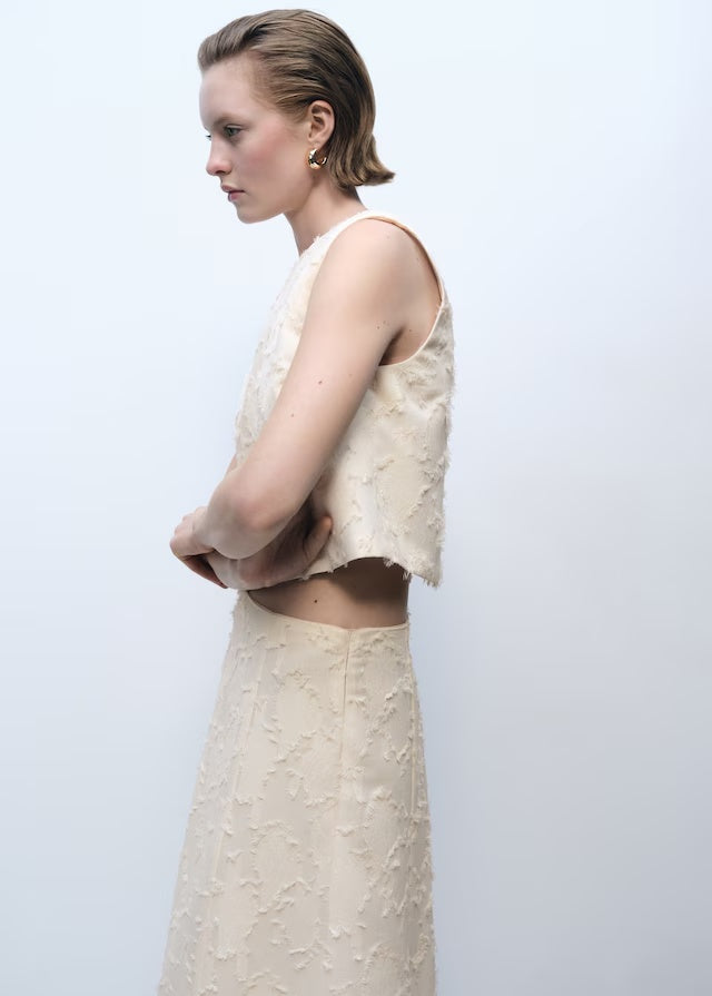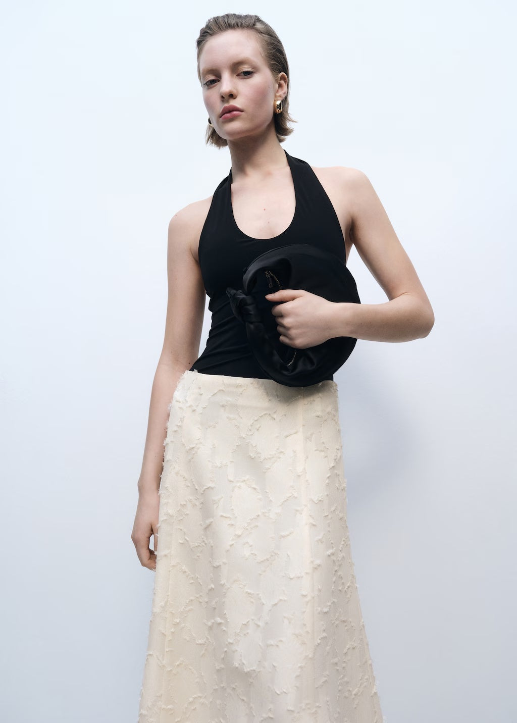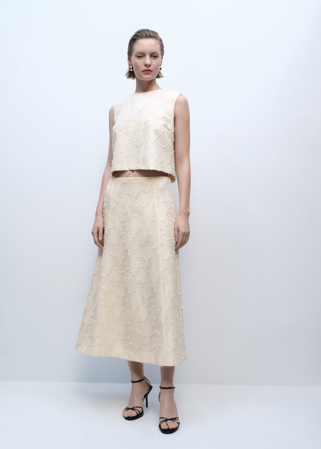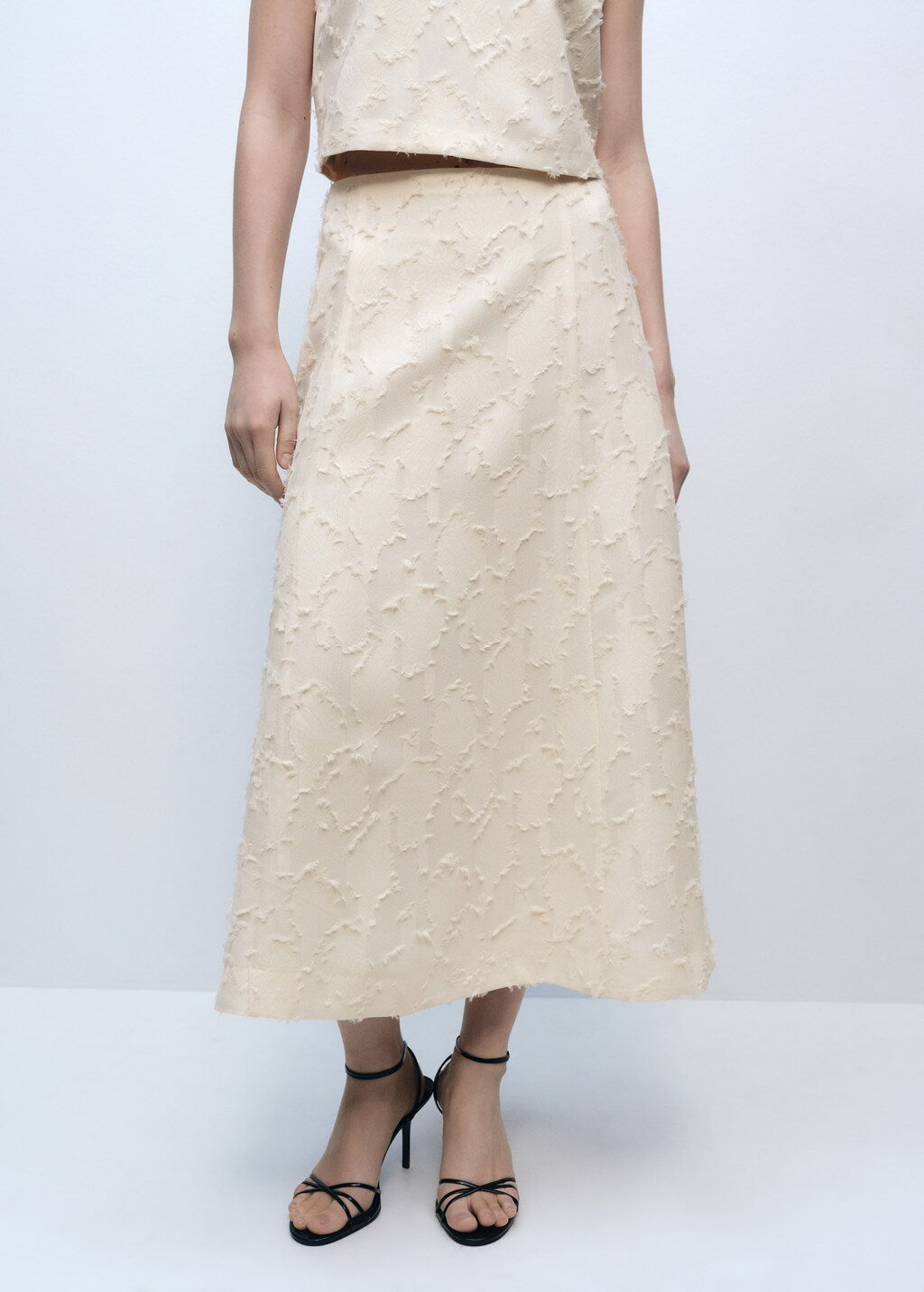 Textured fabric. Midi design. A-line design. Mid-rise. Side zip closure. Total look. This garment belongs to our event collection, designed to make you the perfect guest at any party, wedding or ceremony.Product Code: 87096367-02