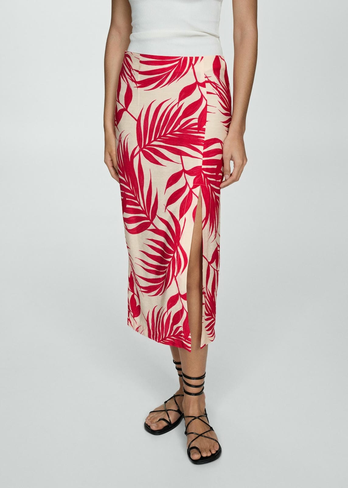 Flowy fabric. Straight design. Midi design. Medium waist. Tropical print. Side slit. Plus Size Available. Side length 83.0 cm. Skirt length 82.0 cmProduct Code: 77040349-05