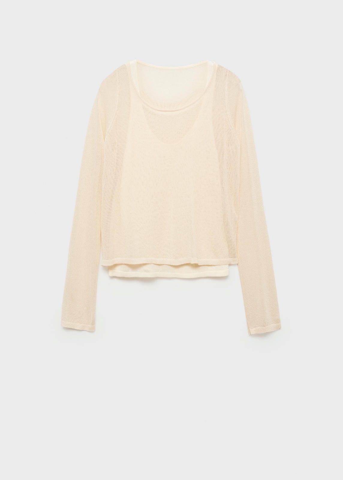 Fine knit fabric. Straight design. combined design. Round neck. Long sleeve. Thin straps. Back length 57.0 cmProduct Code: 77074020-08