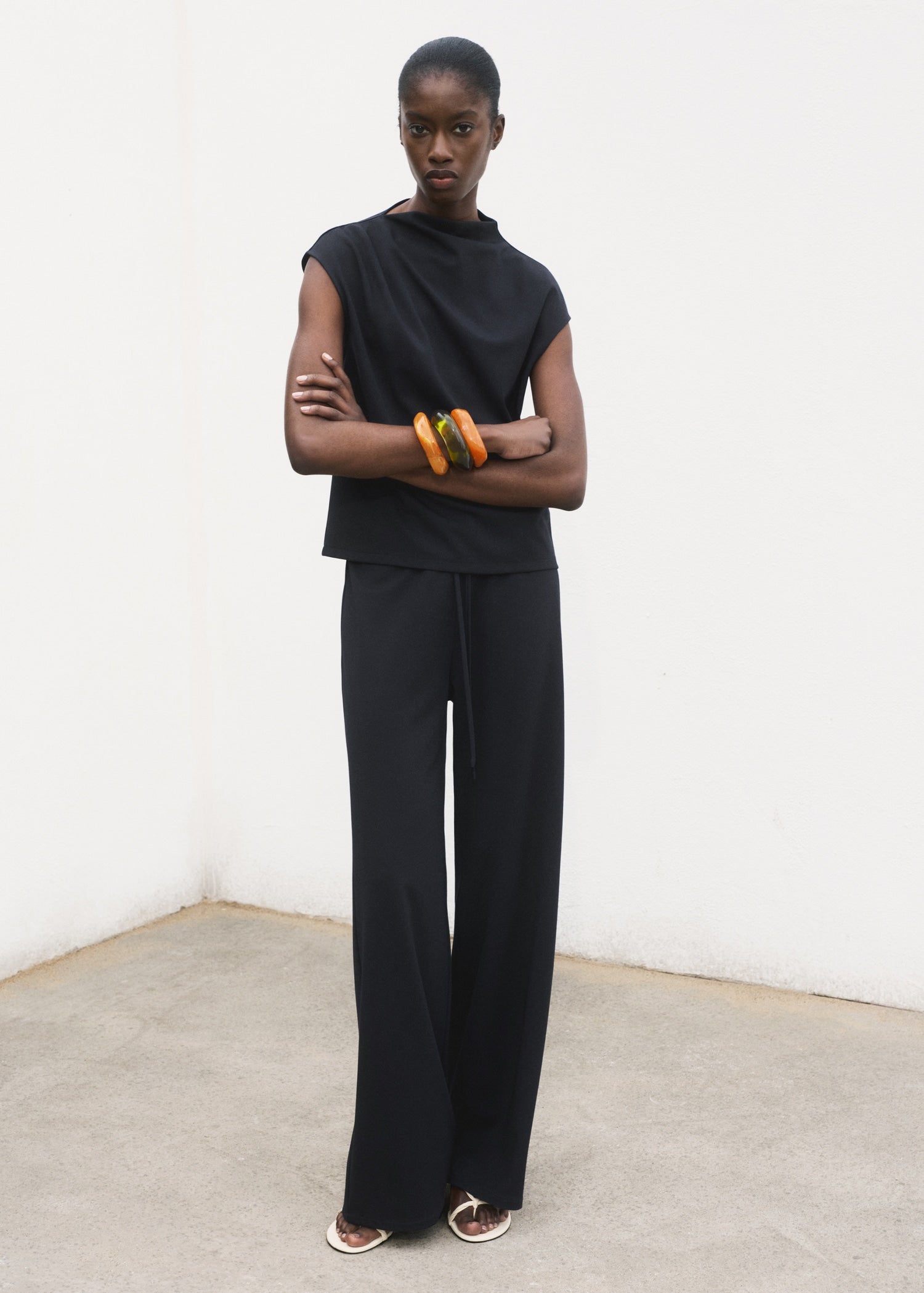 Fluid fabric. Straight Design. Asymmetrical neckline. Gathered details. Sleeveless. Total look. Sleeveless.Product Code: 17081579-56