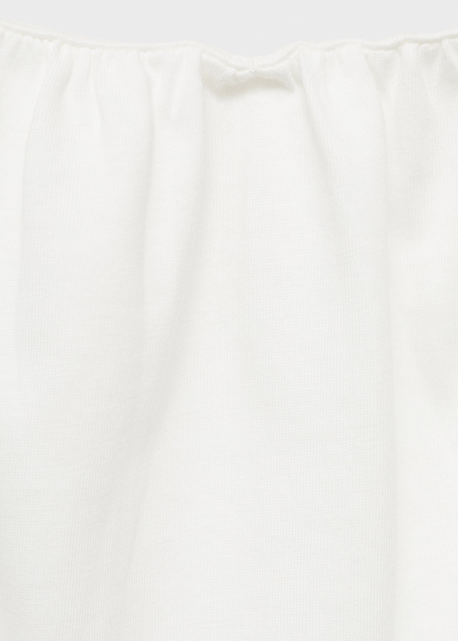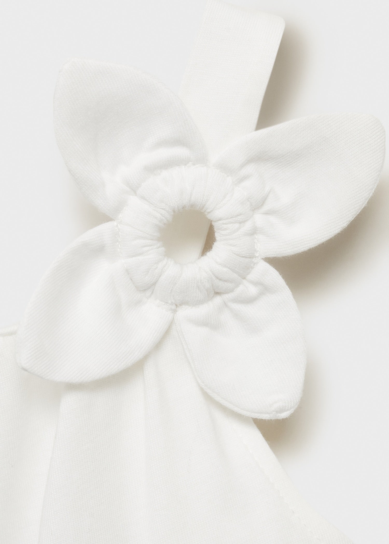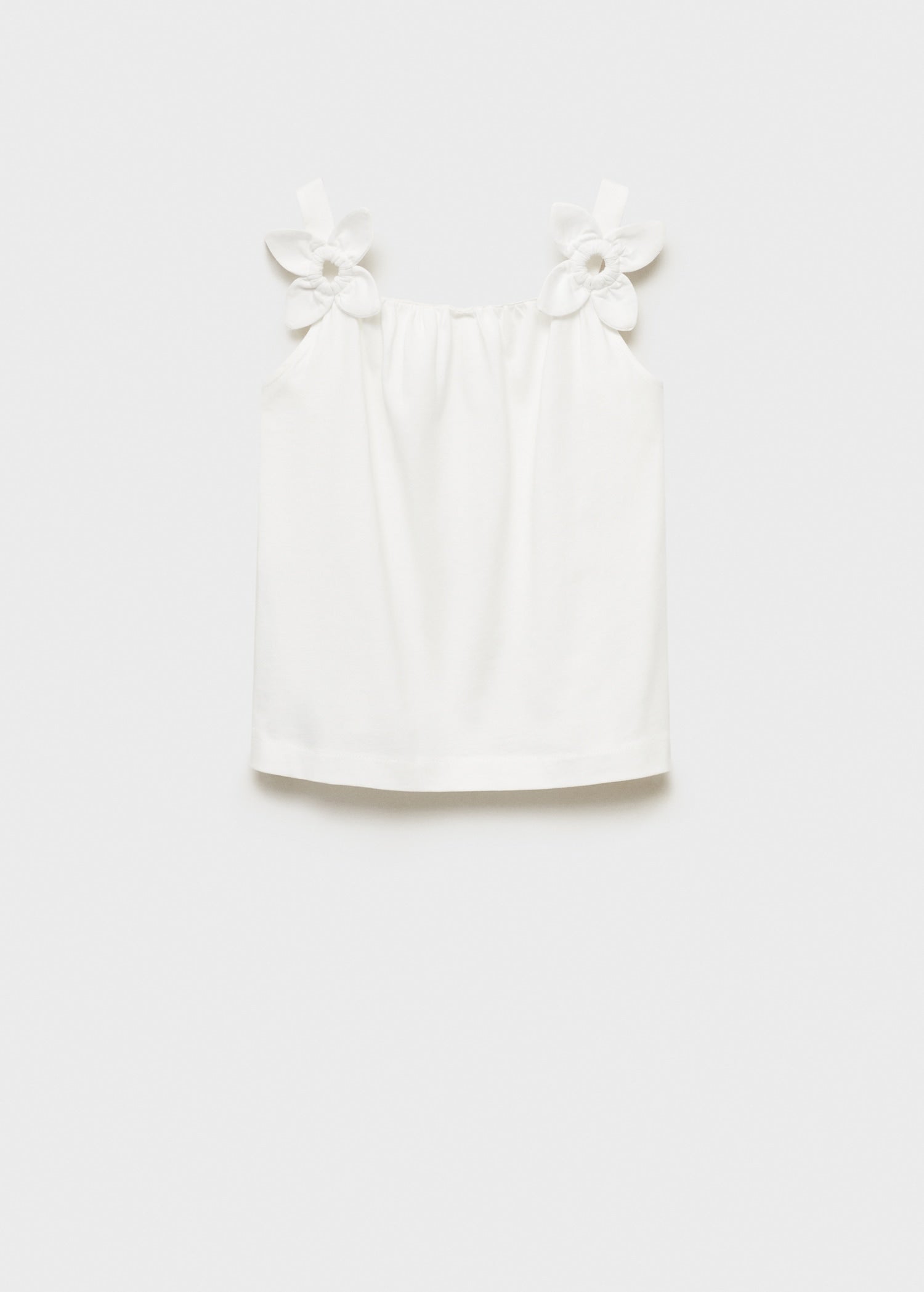 100% cotton fabric. Short design. Straight Design. Straight collar. Thin straps. Top with embroidered flower straps. Ruched detail at the front.Product Code: 17081204-02